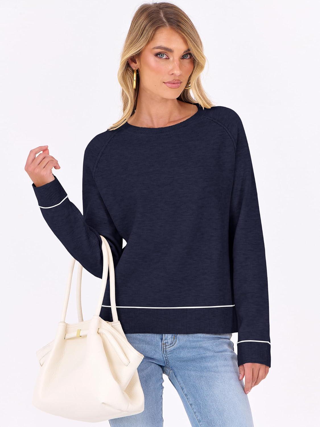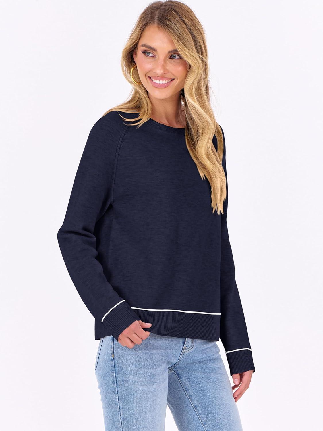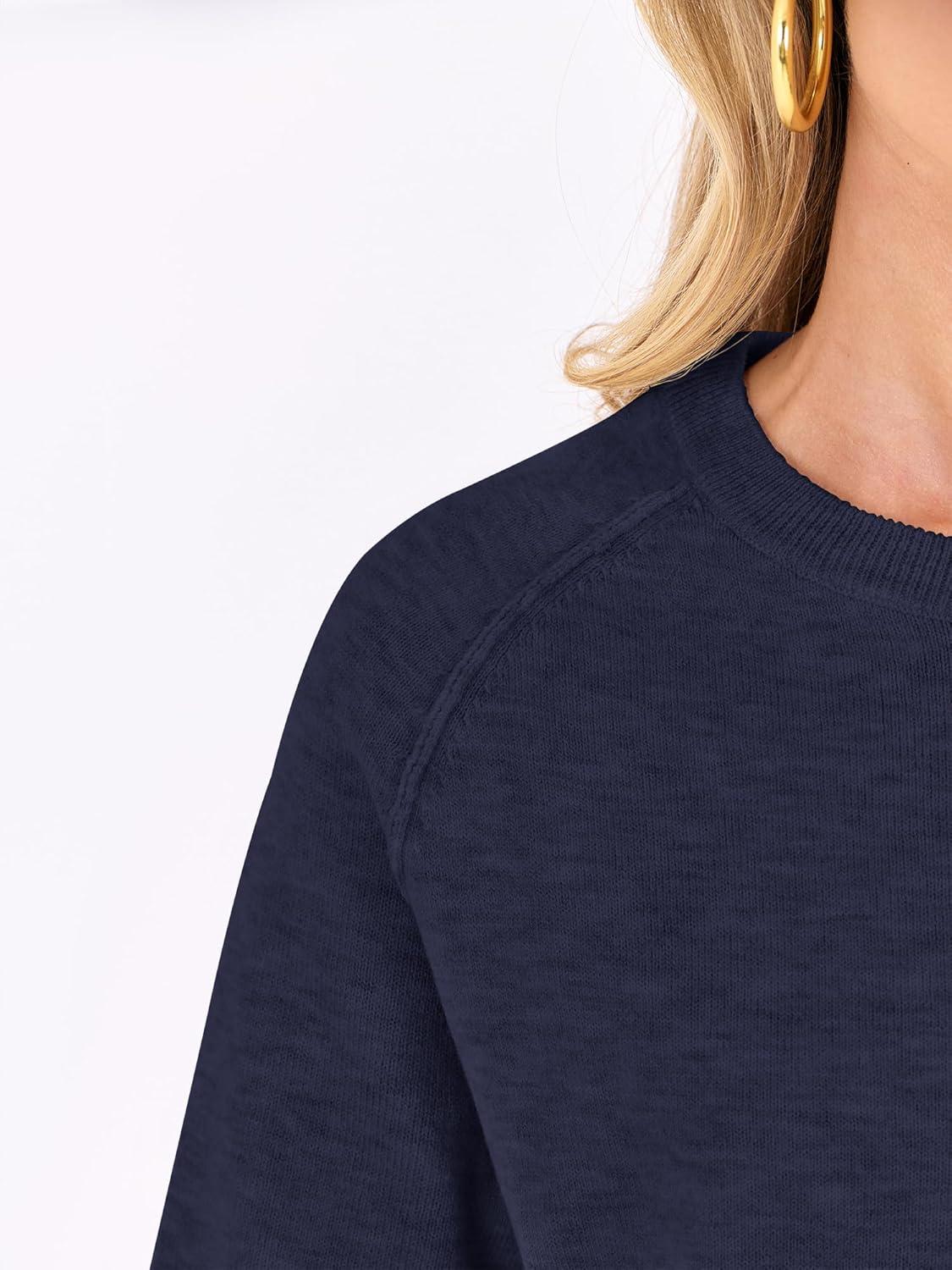imageANRABESS Sweaters for Women Long Sleeve Cropped Lightweight 2025 Fall Fashion Knit Crewneck Pullover Top Soft Trendy OutfitsNavy Blue