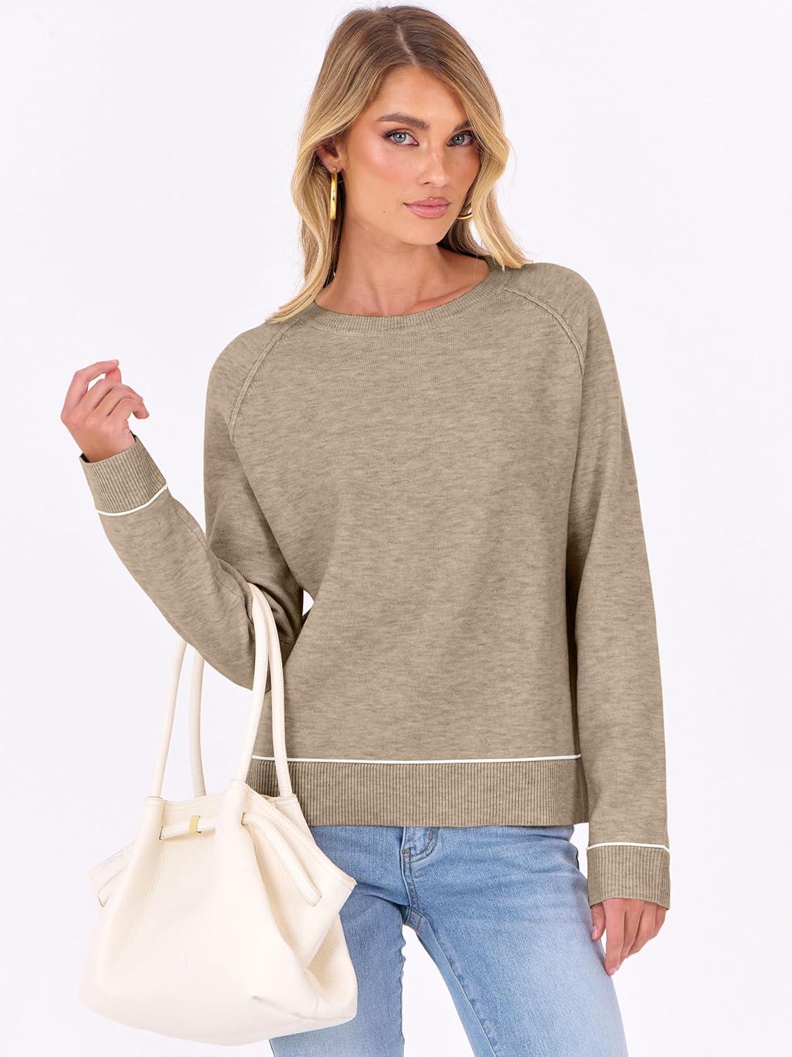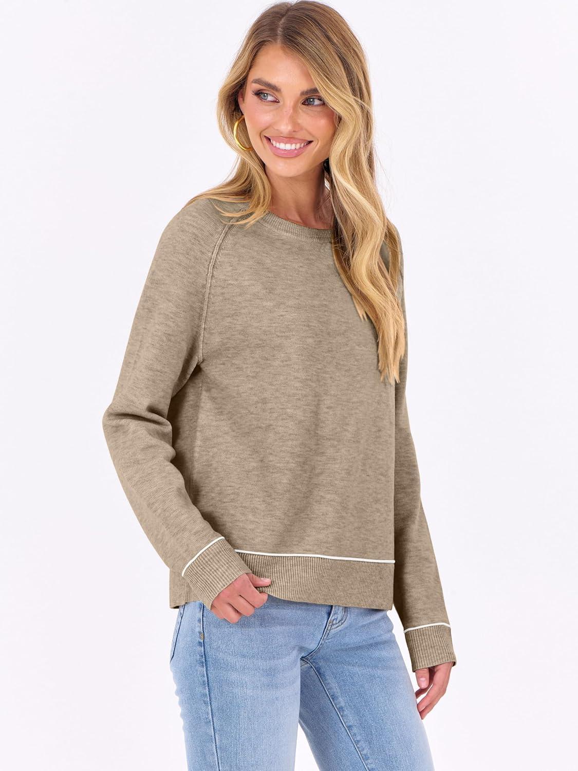 imageANRABESS Sweaters for Women Long Sleeve Cropped Lightweight 2025 Fall Fashion Knit Crewneck Pullover Top Soft Trendy OutfitsTan