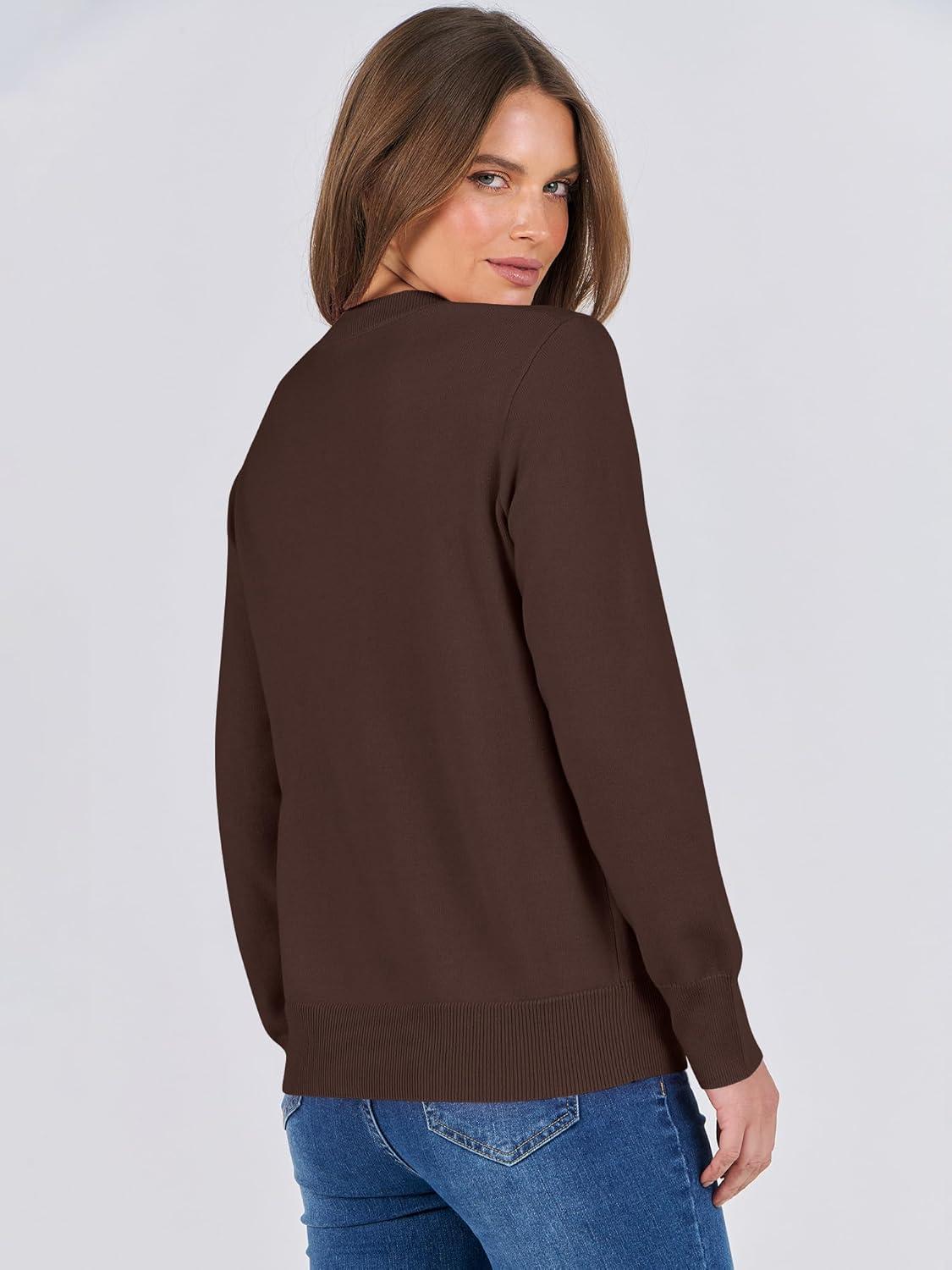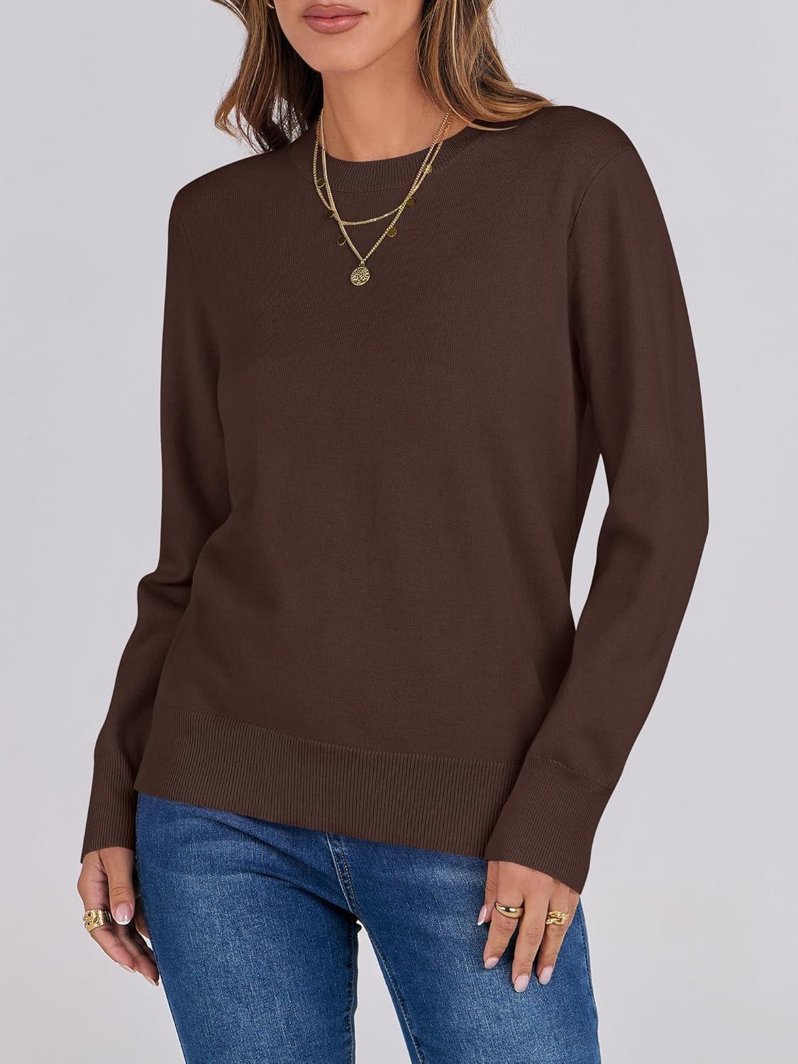 imageANRABESS Sweaters for Women Long Sleeve Lightweight Crewneck Soft Basic Knit 2025 Fall Loose Fit Pullover TopsCoffee