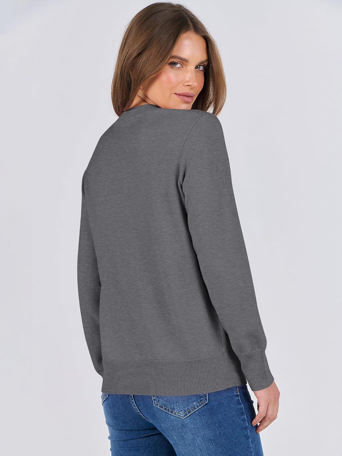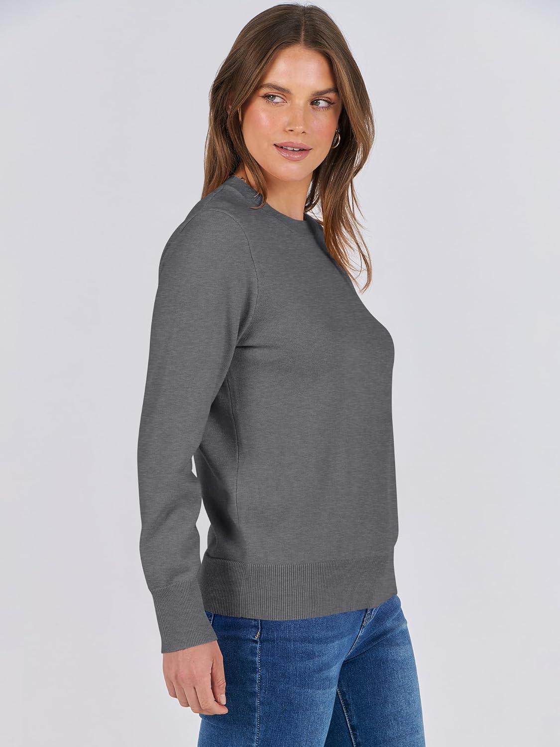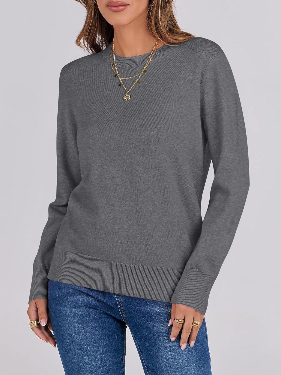 ANRABESS Sweaters for Women Long Sleeve Lightweight Crewneck Soft Basic Knit 2025 Fall Loose Fit Pullover Tops(Dark Gray)