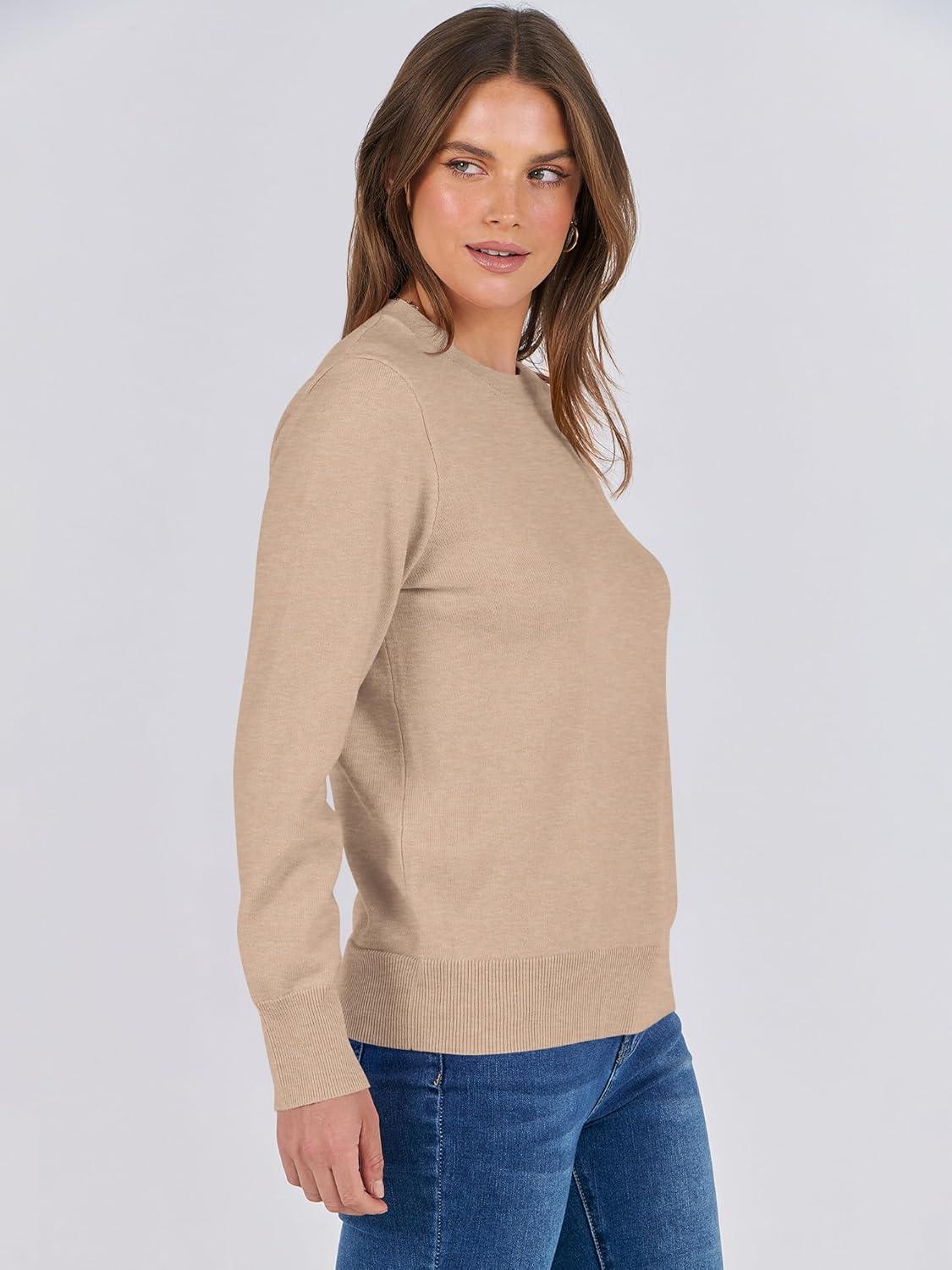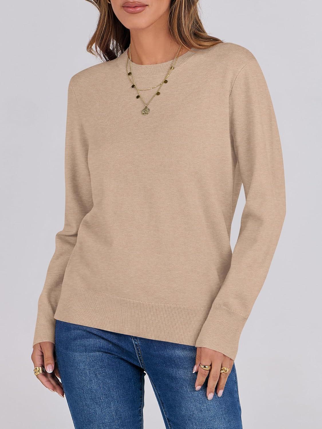 ANRABESS Sweaters for Women Long Sleeve Lightweight Crewneck Soft Basic Knit 2025 Fall Loose Fit Pullover Tops(Warm Khaki)