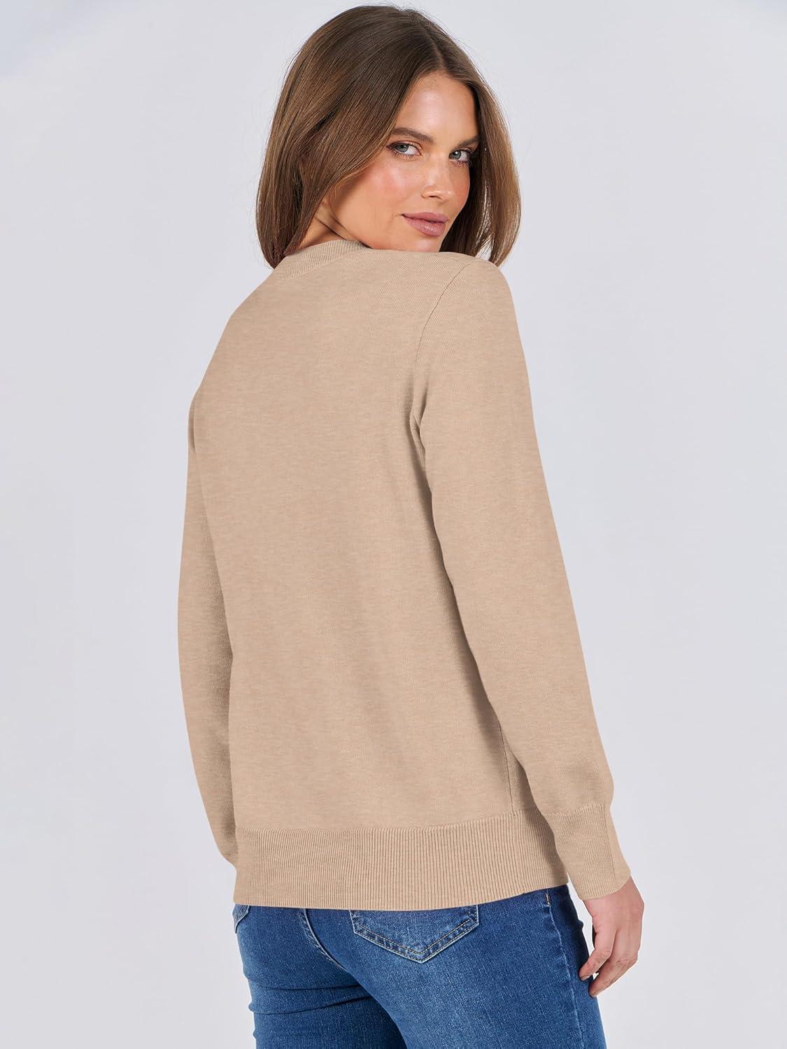imageANRABESS Sweaters for Women Long Sleeve Lightweight Crewneck Soft Basic Knit 2025 Fall Loose Fit Pullover TopsWarm Khaki
