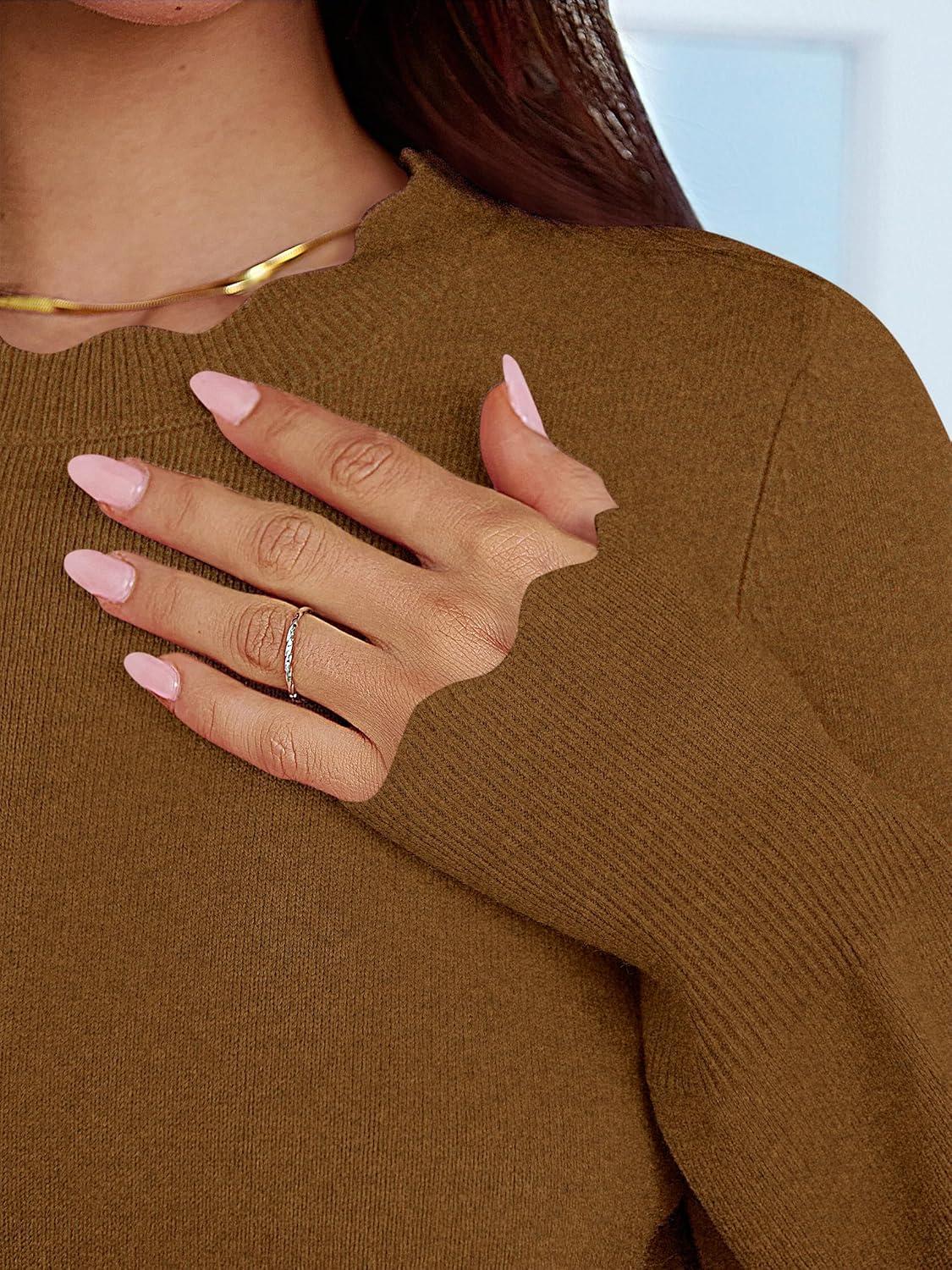 imageANRABESS Sweaters for Women Loose Fit Lightweight Soft Dressy Scalloped Long Sleeve Pullover Tops 2025 Fall Casual OutfitsBrown