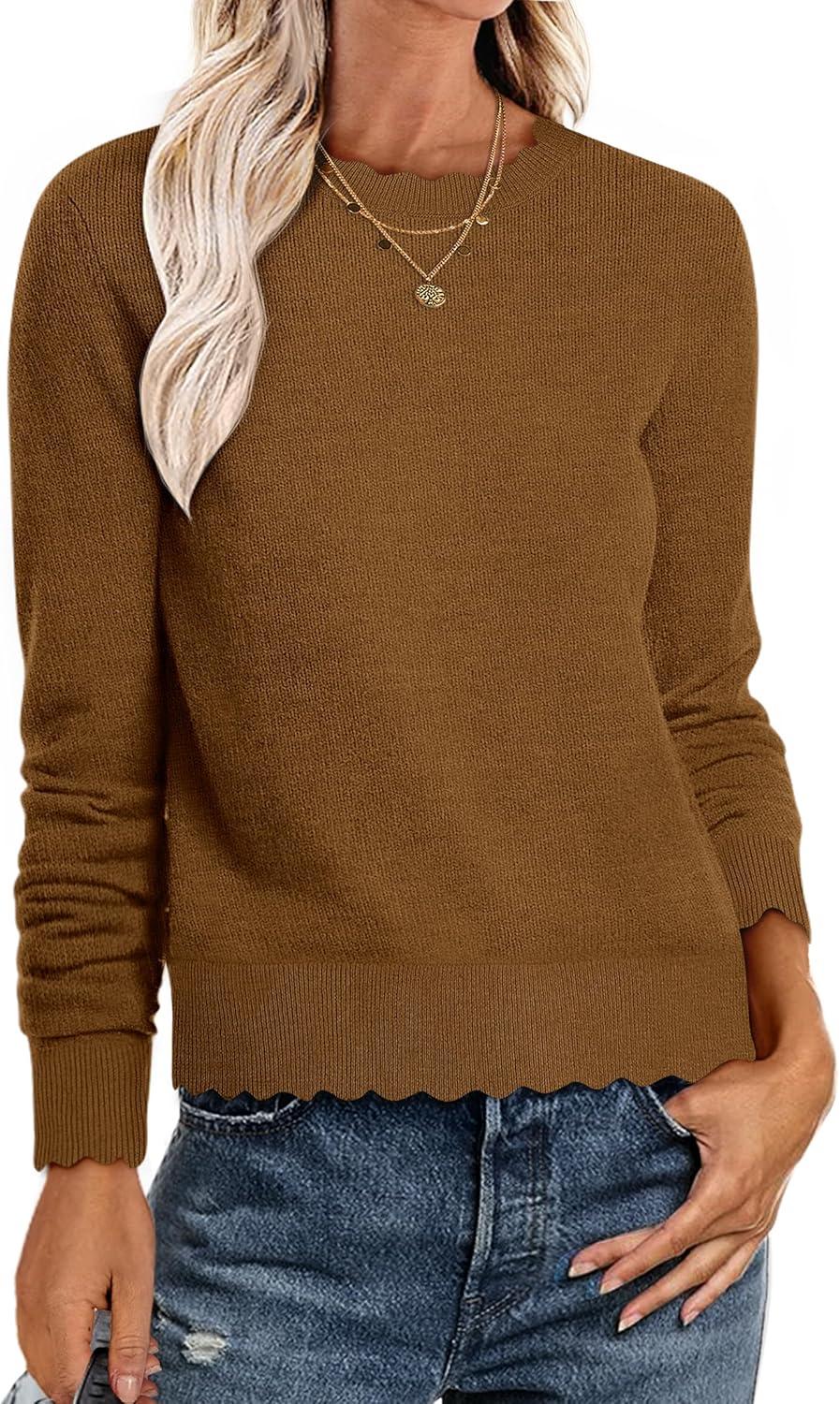 ANRABESS Sweaters for Women Loose Fit Lightweight Soft Dressy Scalloped Long Sleeve Pullover Tops 2025 Fall Casual Outfits(Caramel)