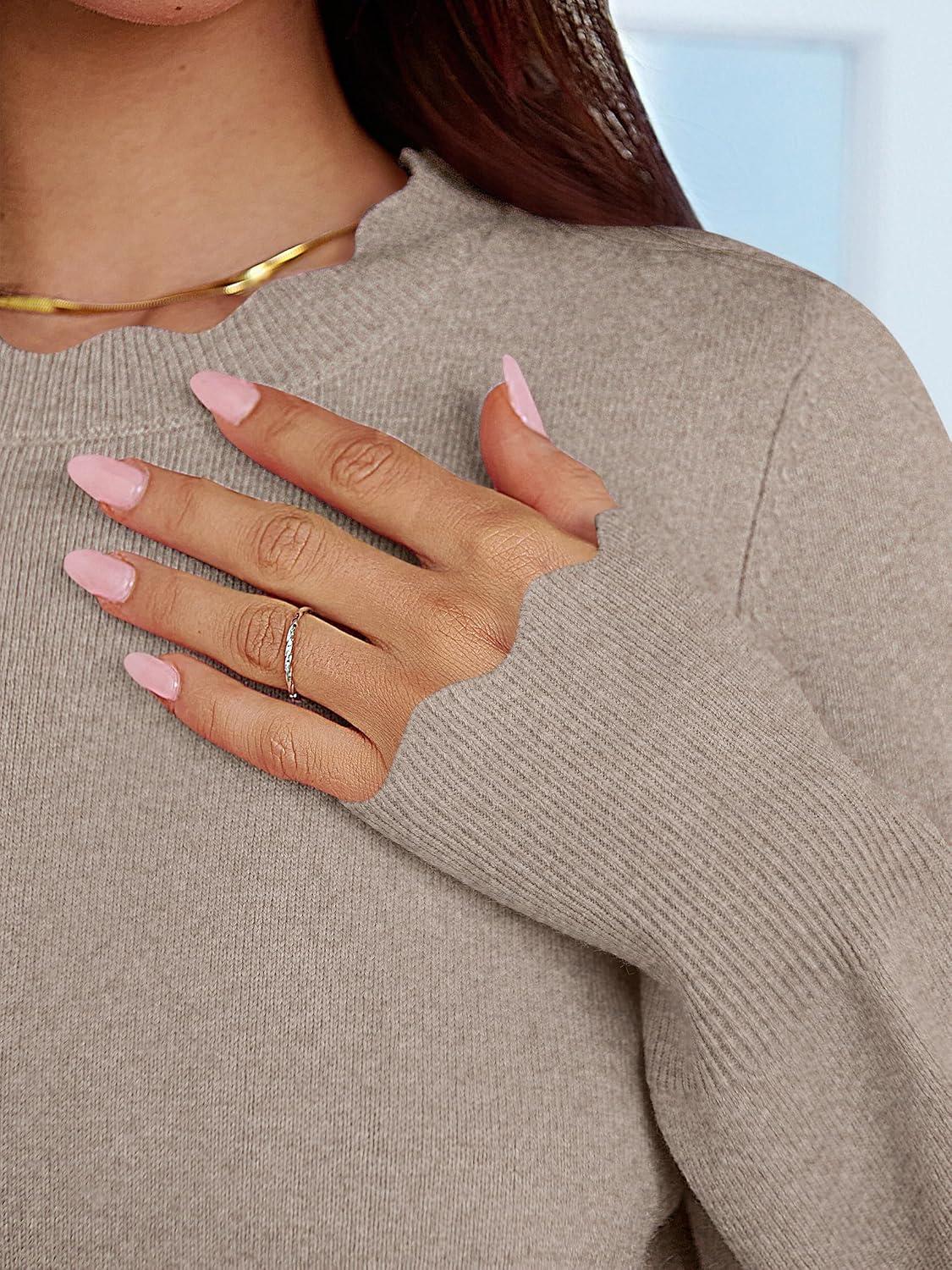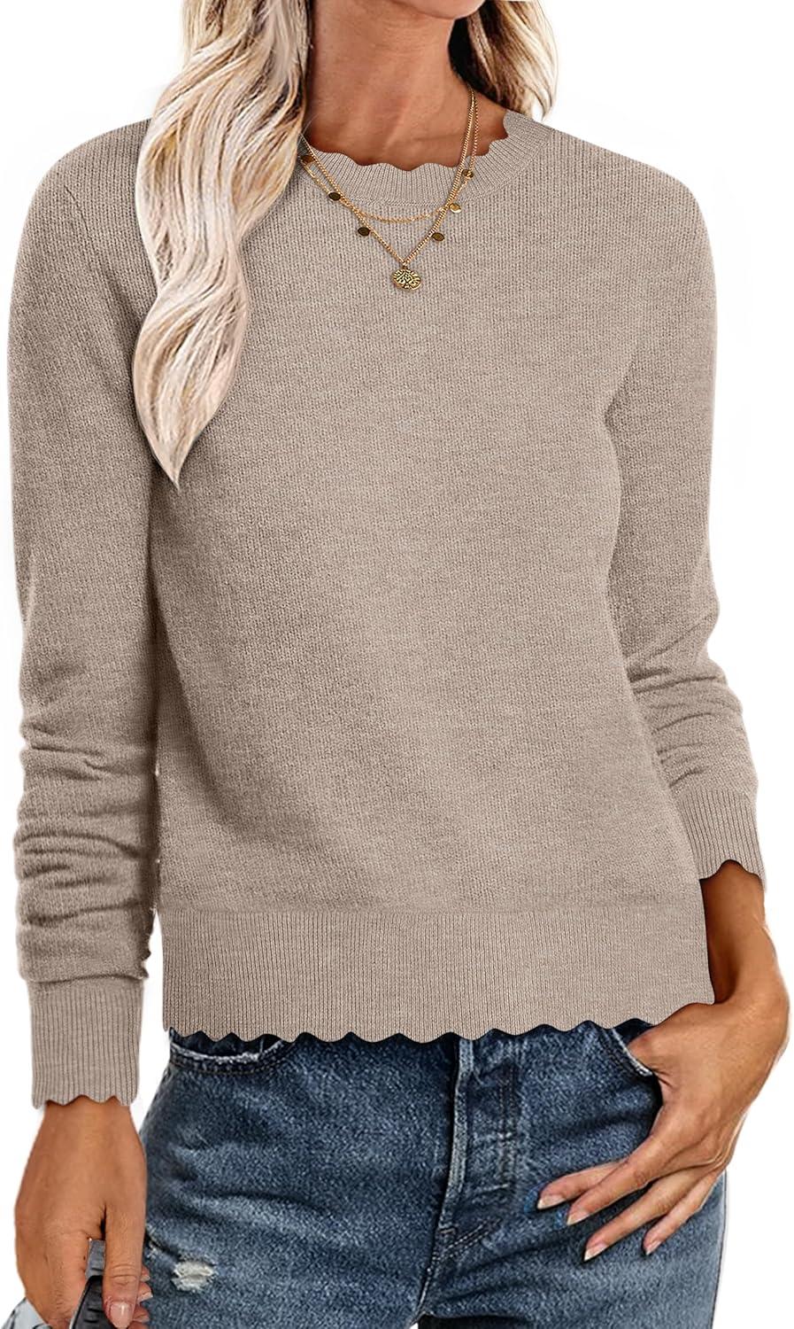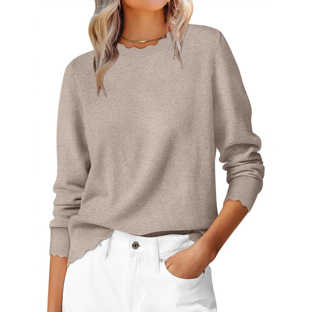 ANRABESS Sweaters for Women Loose Fit Lightweight Soft Dressy Scalloped Long Sleeve Pullover Tops 2025 Fall Casual Outfits(Khaki)