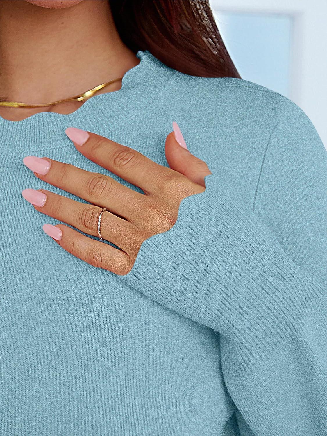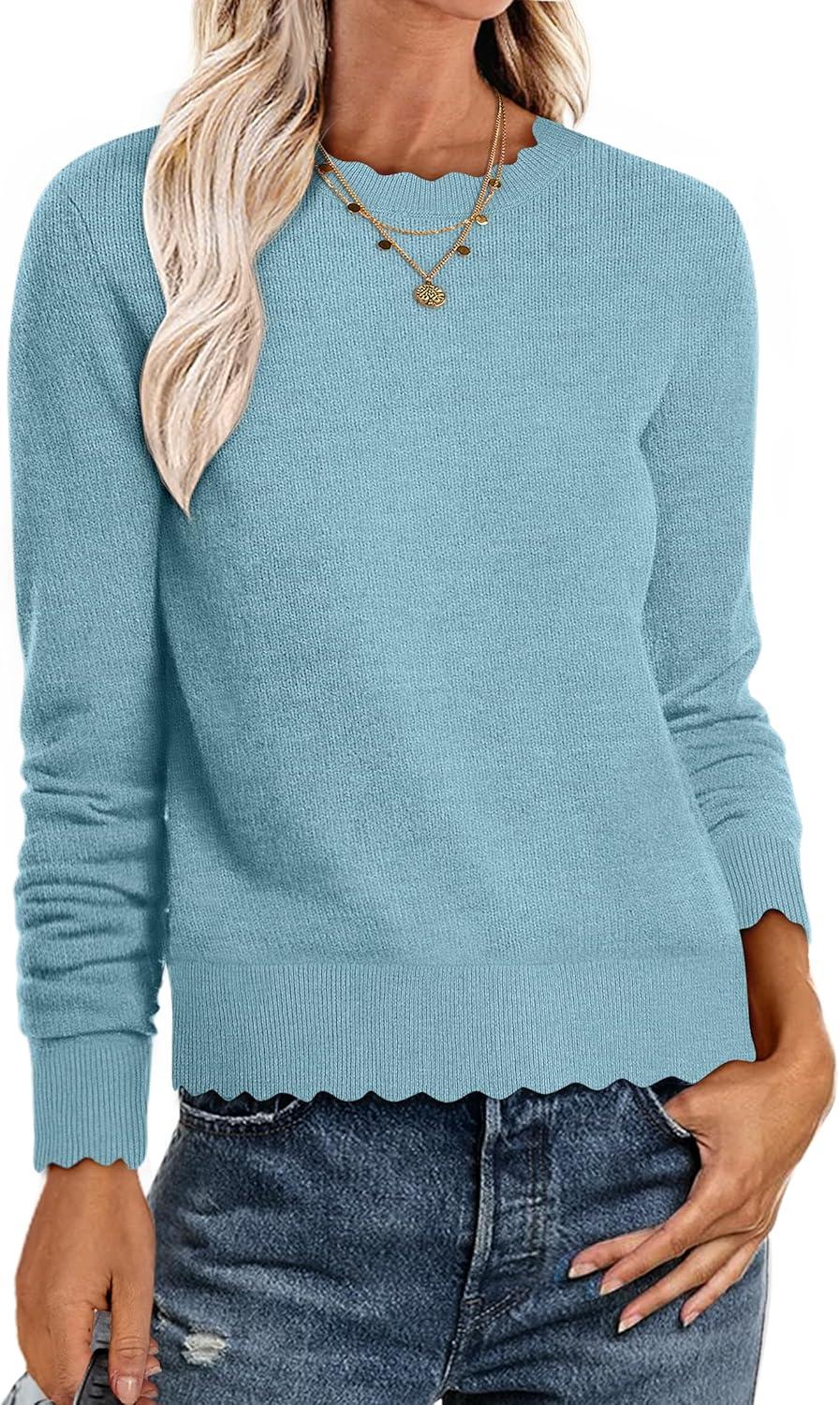 ANRABESS Sweaters for Women Loose Fit Lightweight Soft Dressy Scalloped Long Sleeve Pullover Tops 2025 Fall Casual Outfits(Light Blue)