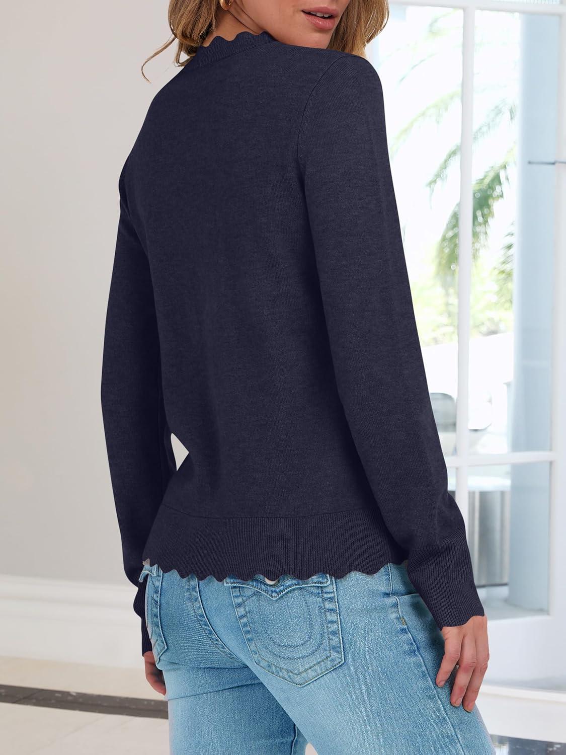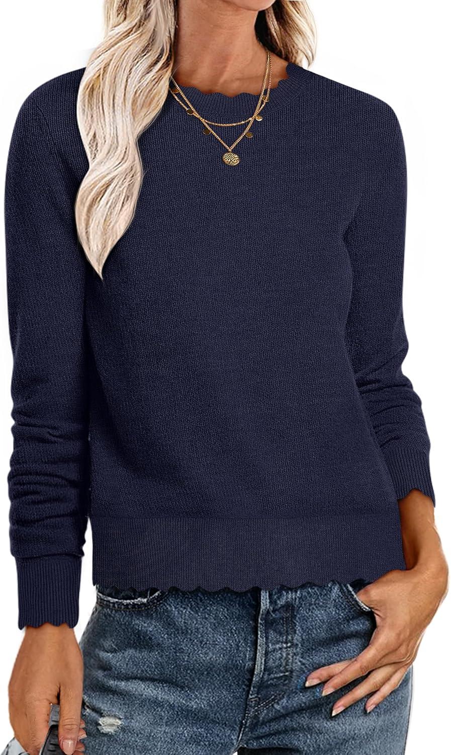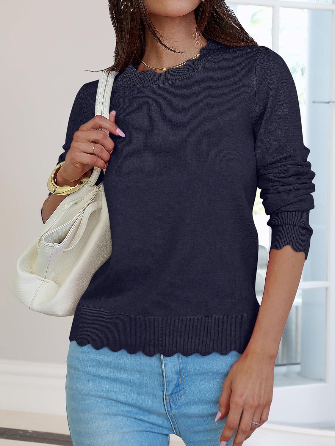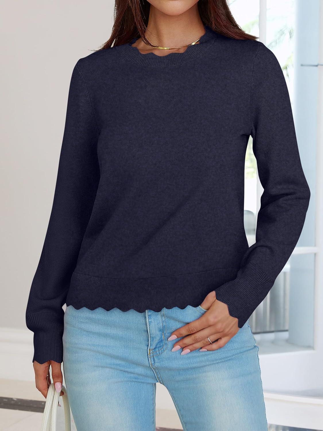 ANRABESS Sweaters for Women Loose Fit Lightweight Soft Dressy Scalloped Long Sleeve Pullover Tops 2025 Fall Casual Outfits(Navy Blue)