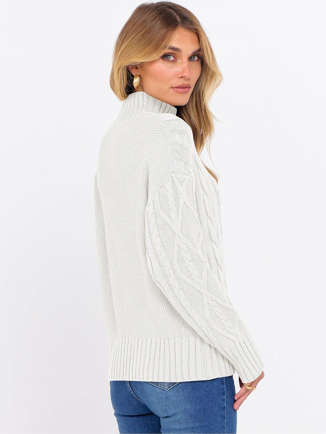 ANRABESS Sweaters for Women Oversized Long Sleeve Turtleneck Cable Knit Casual Loose Pullover Tops 2025 Fall Trendy Outfits(Off-white)