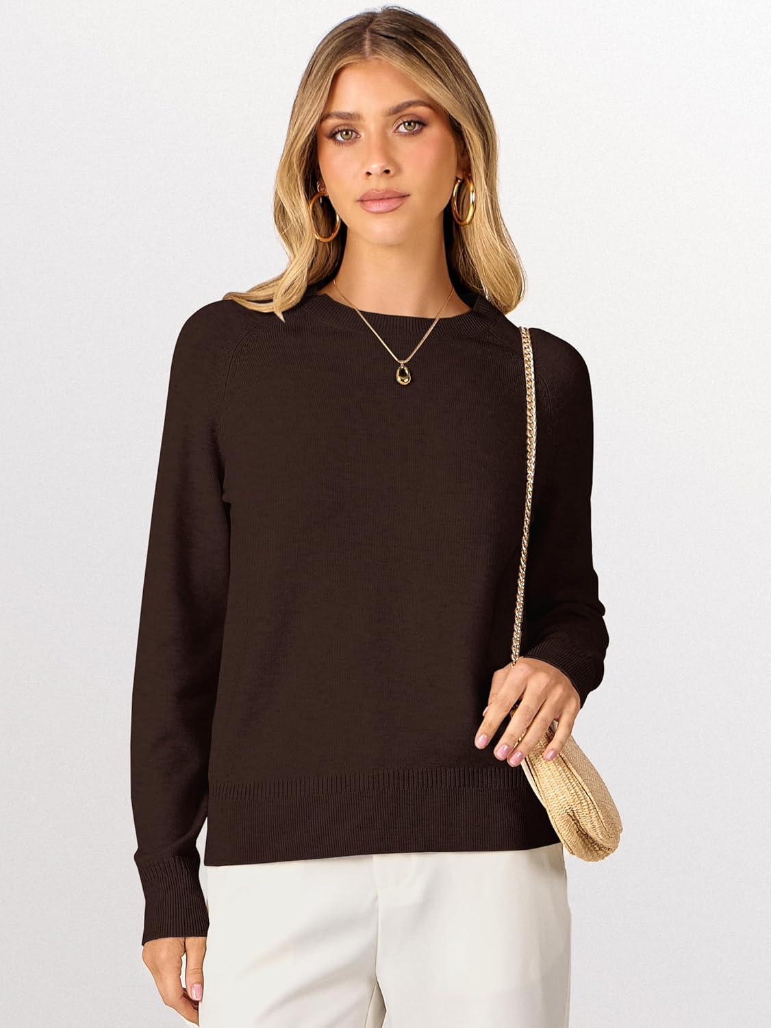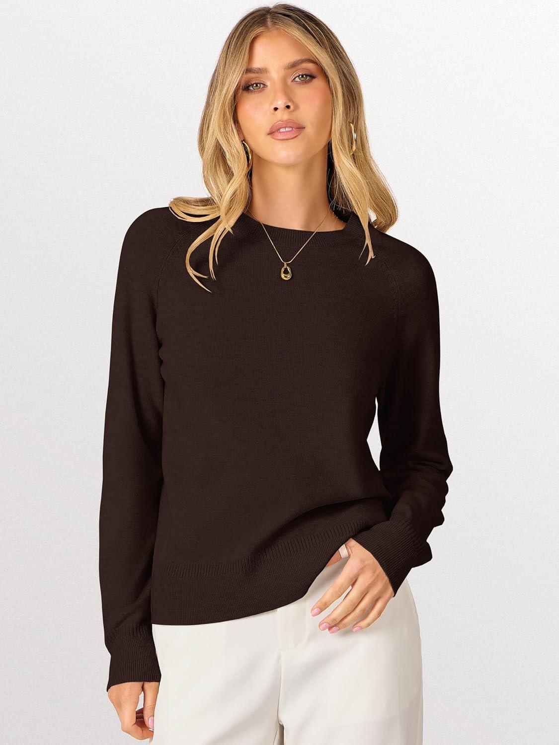 ANRABESS Sweaters for Women Short Length Loose Fit Lightweight Long Sleeve Crewneck Knit Basic Sweater 2025 Fall Outfits(Deep Taupe)