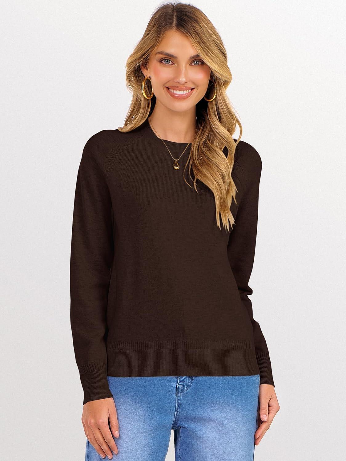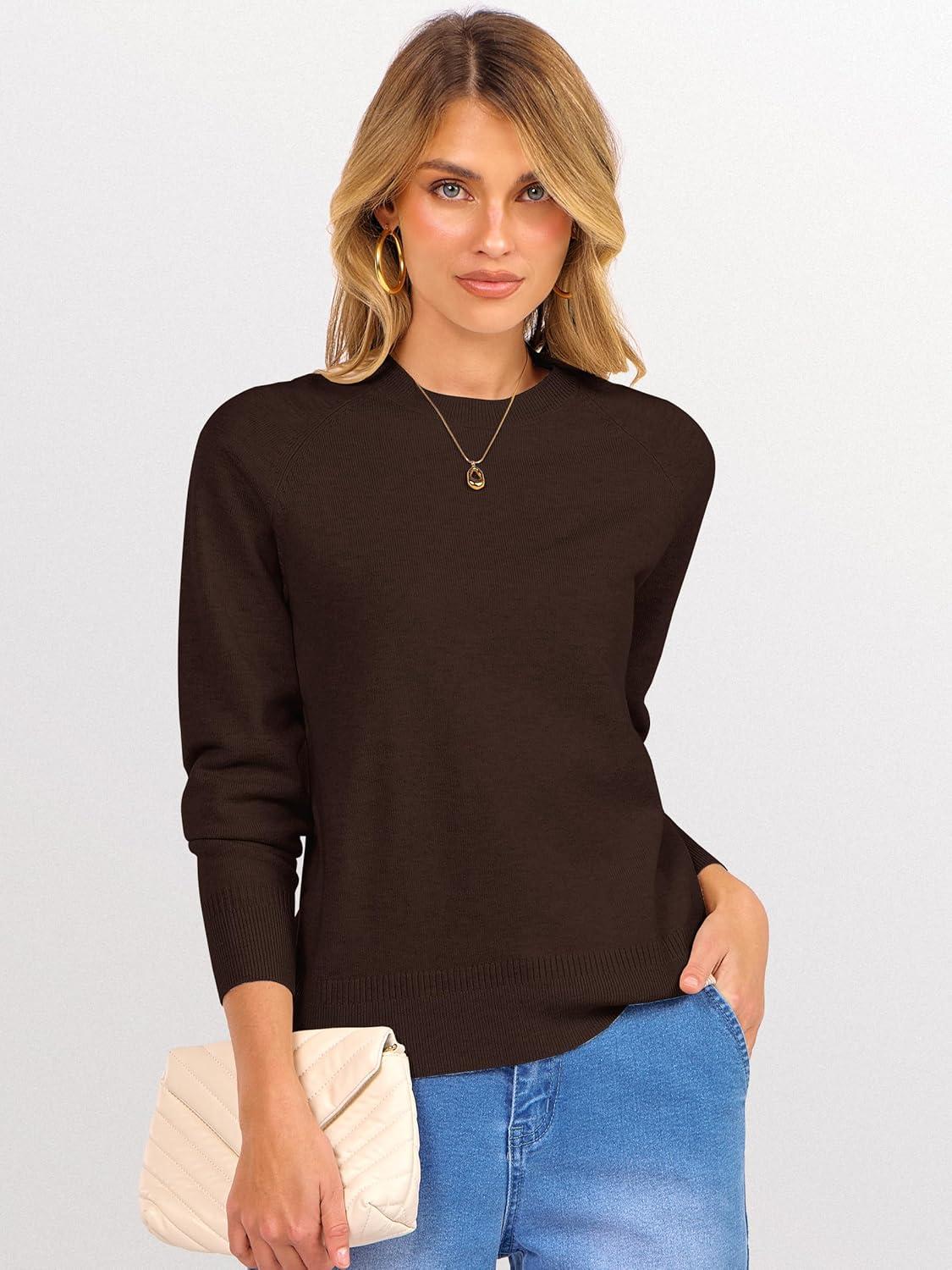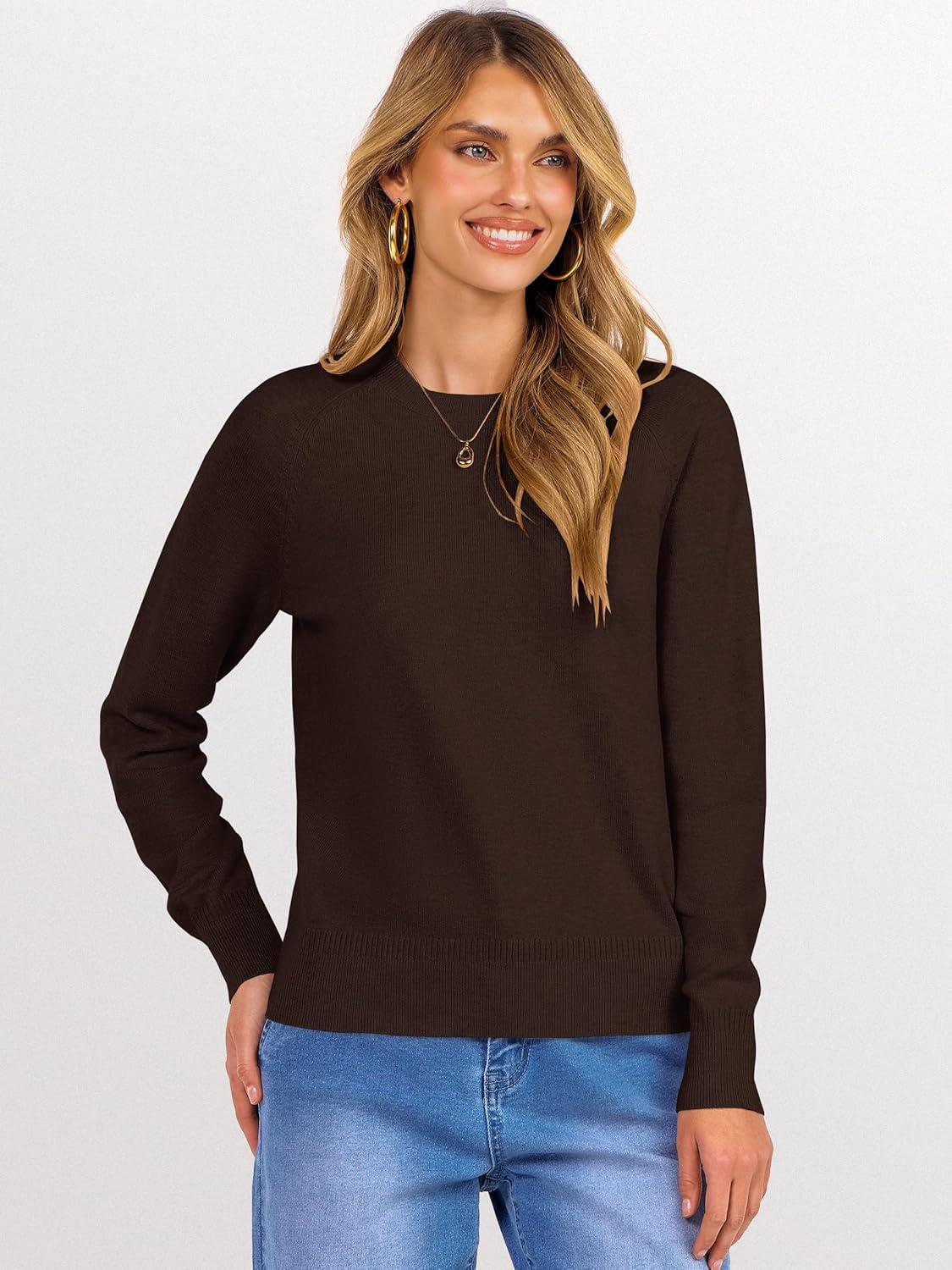 imageANRABESS Sweaters for Women Short Length Loose Fit Lightweight Long Sleeve Crewneck Knit Basic Sweater 2025 Fall OutfitsDeep Taupe
