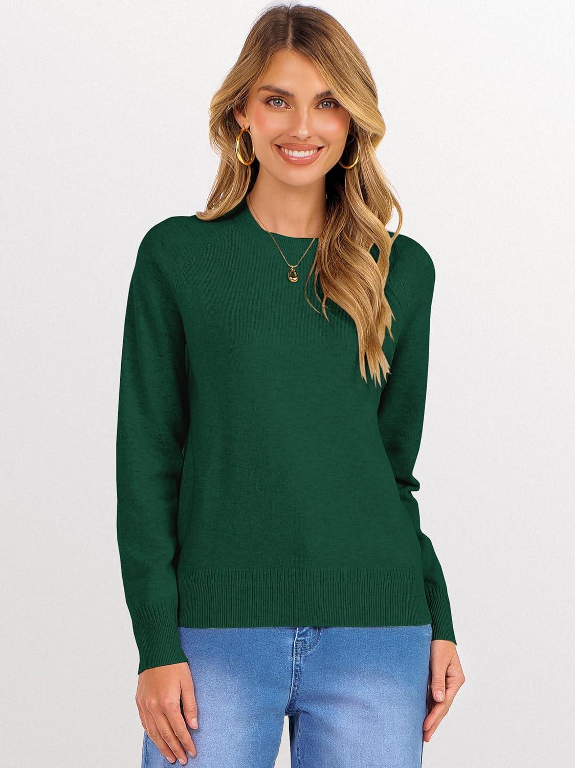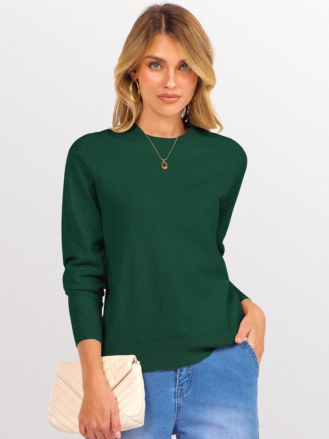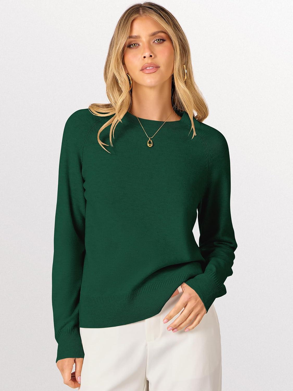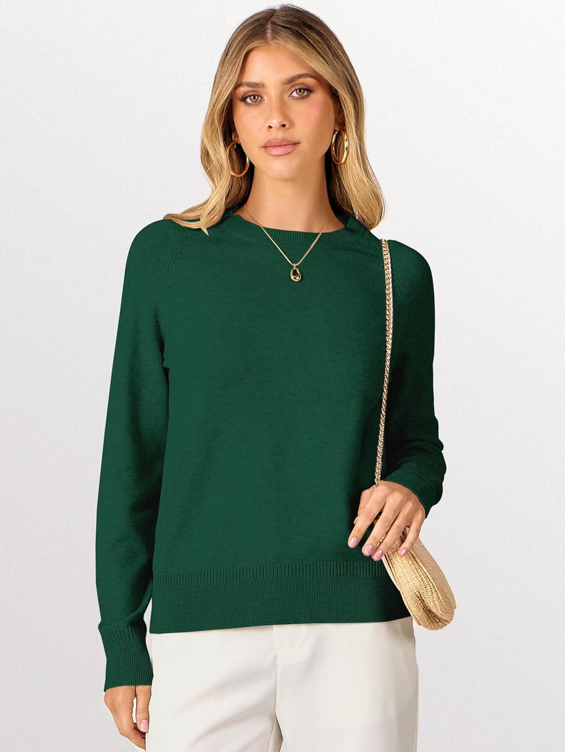 imageANRABESS Sweaters for Women Short Length Loose Fit Lightweight Long Sleeve Crewneck Knit Basic Sweater 2025 Fall OutfitsGreen
