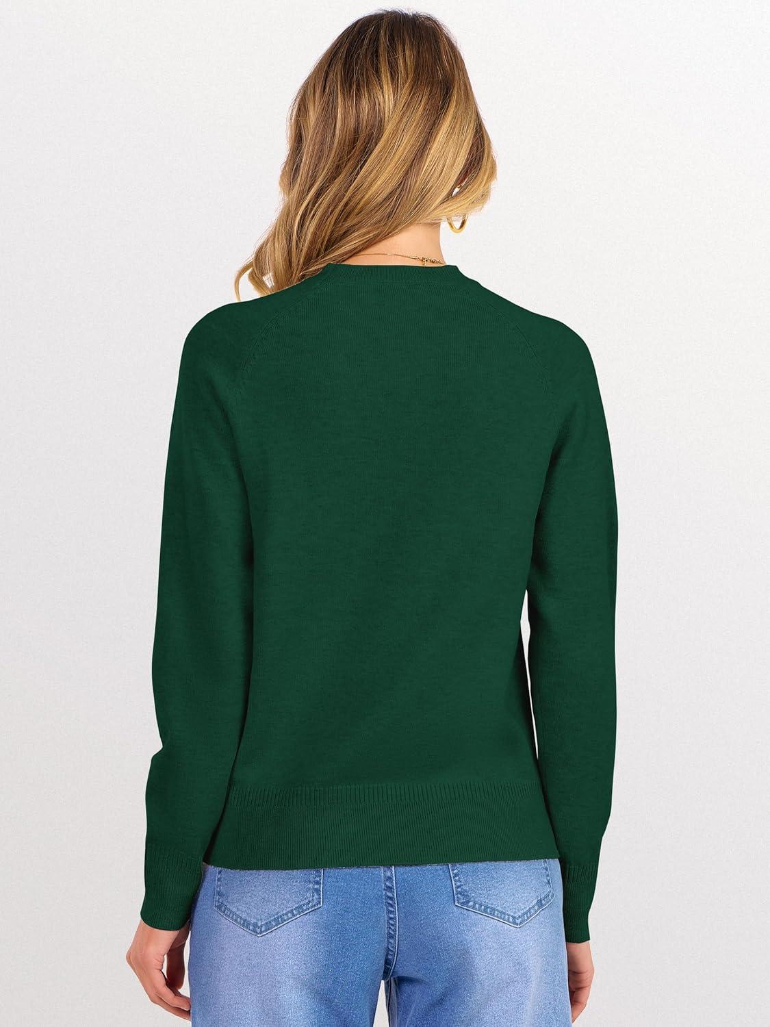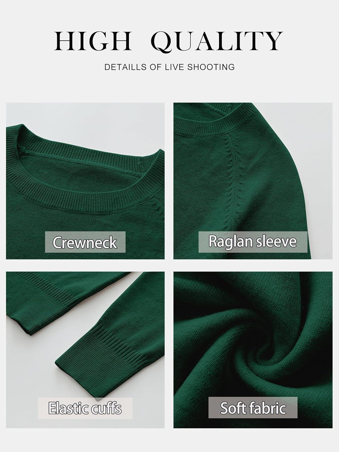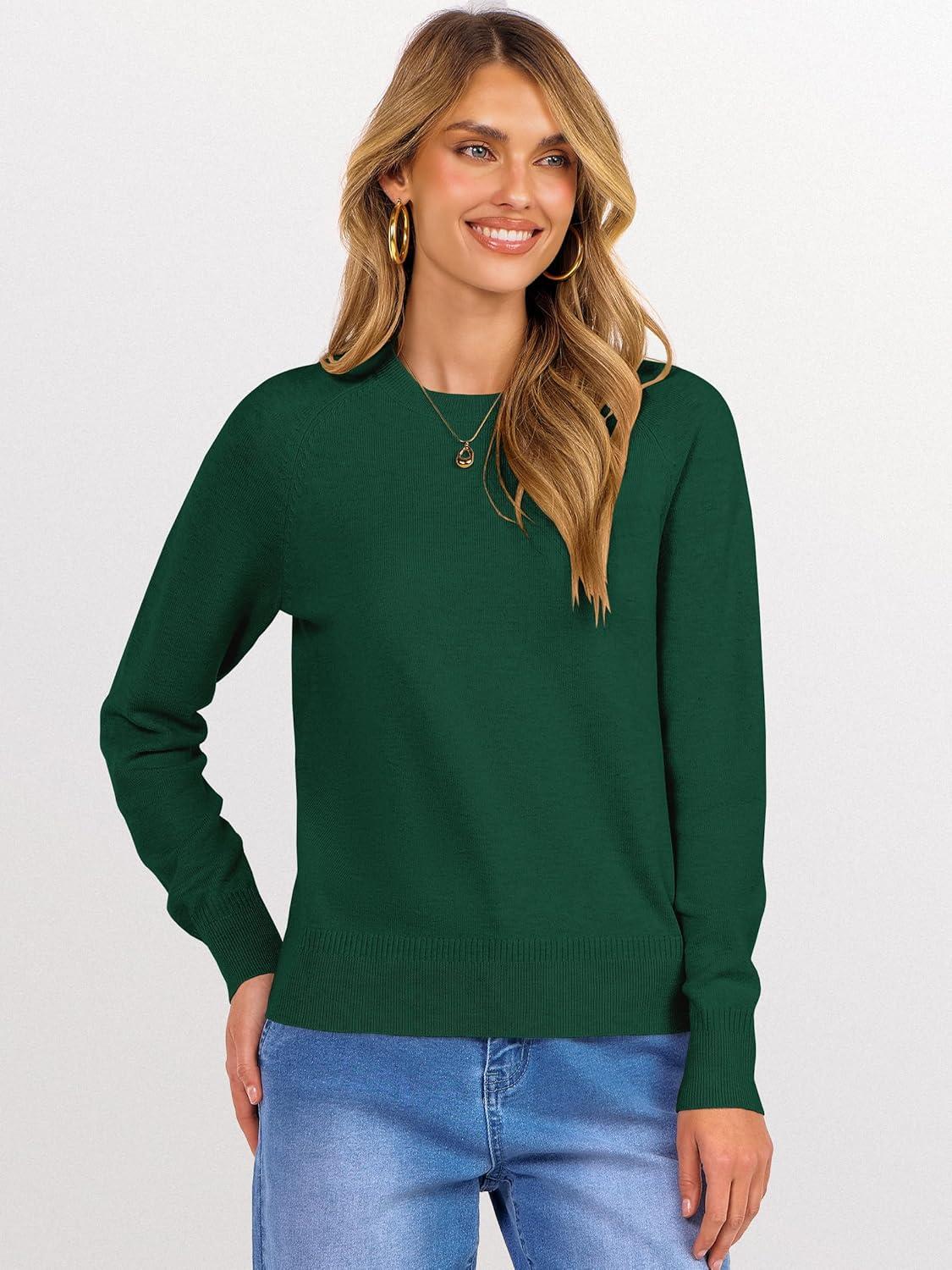 ANRABESS Sweaters for Women Short Length Loose Fit Lightweight Long Sleeve Crewneck Knit Basic Sweater 2025 Fall Outfits(Green)