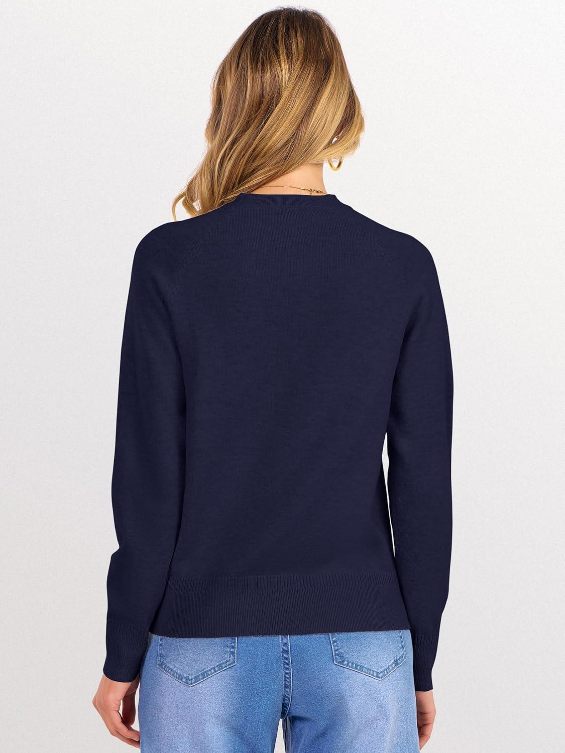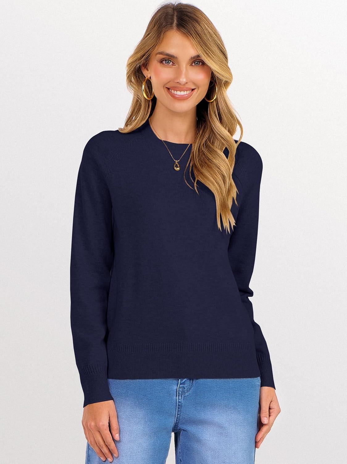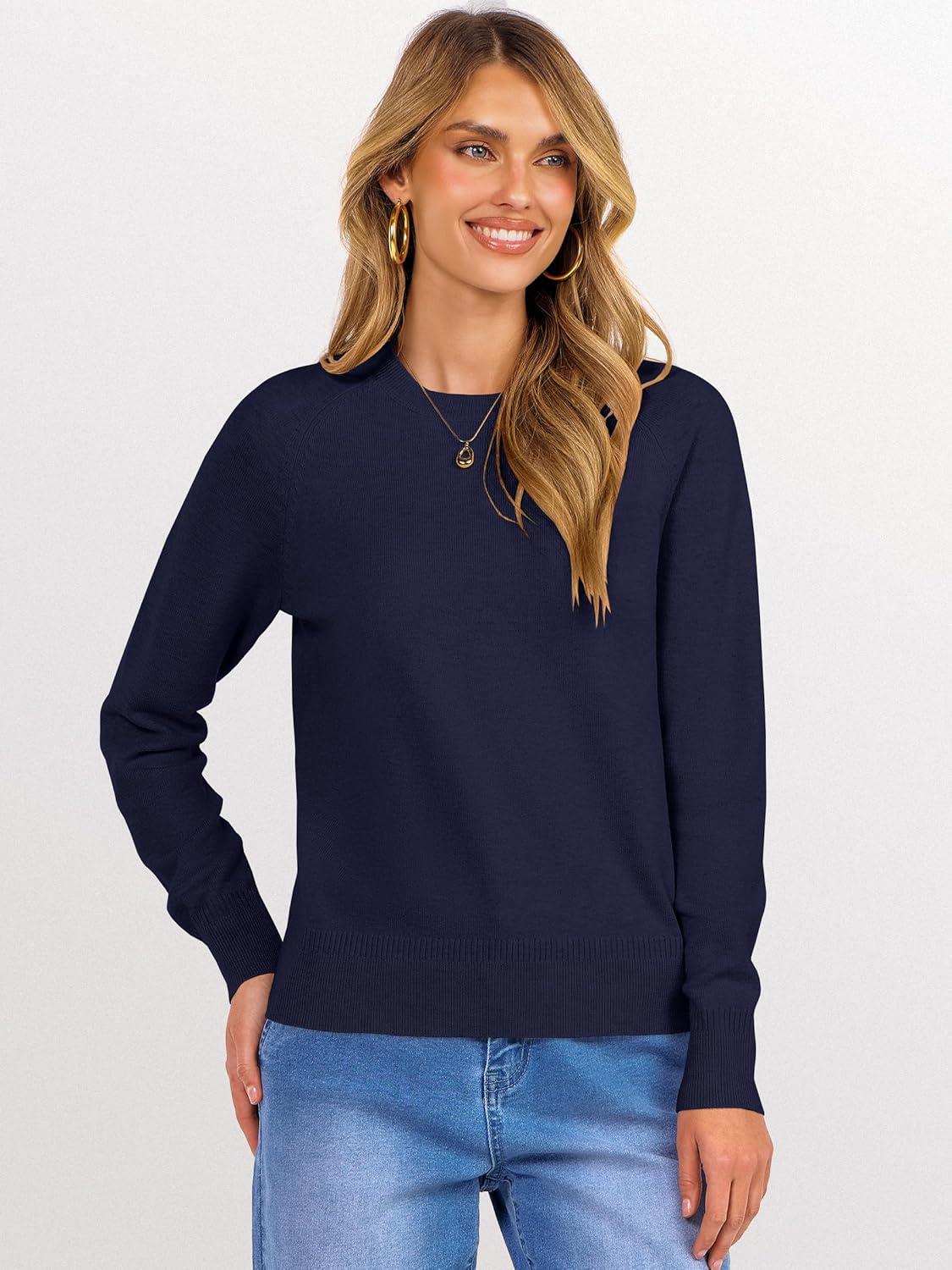 ANRABESS Sweaters for Women Short Length Loose Fit Lightweight Long Sleeve Crewneck Knit Basic Sweater 2025 Fall Outfits(Navy Blue)