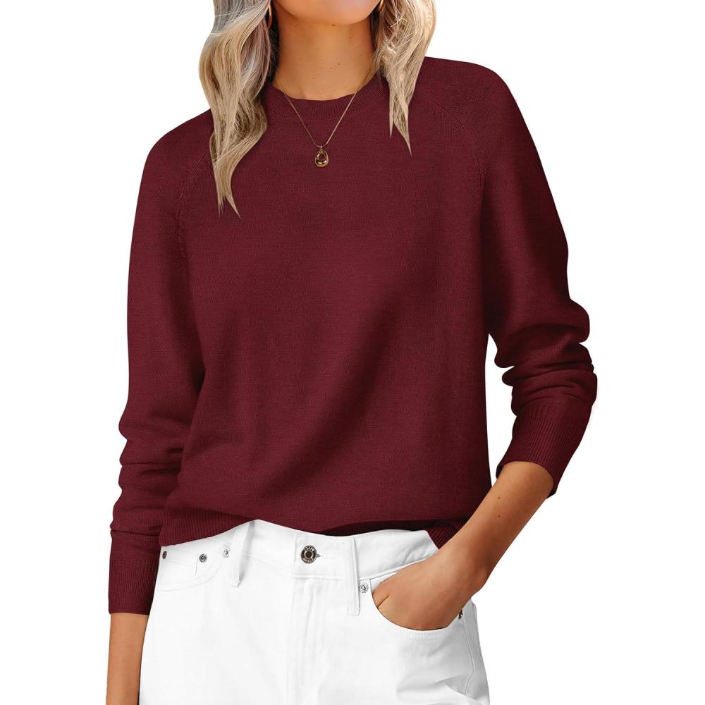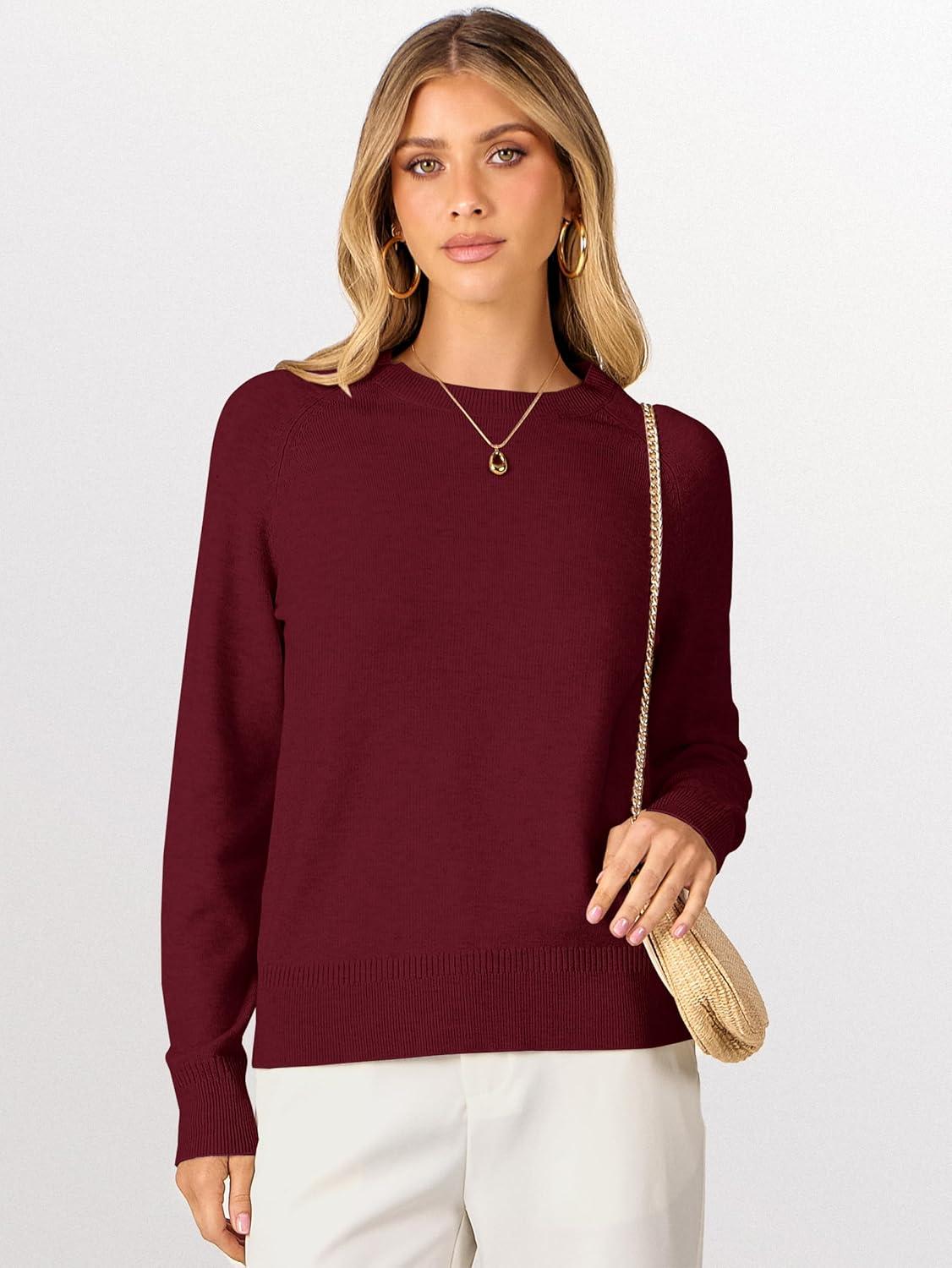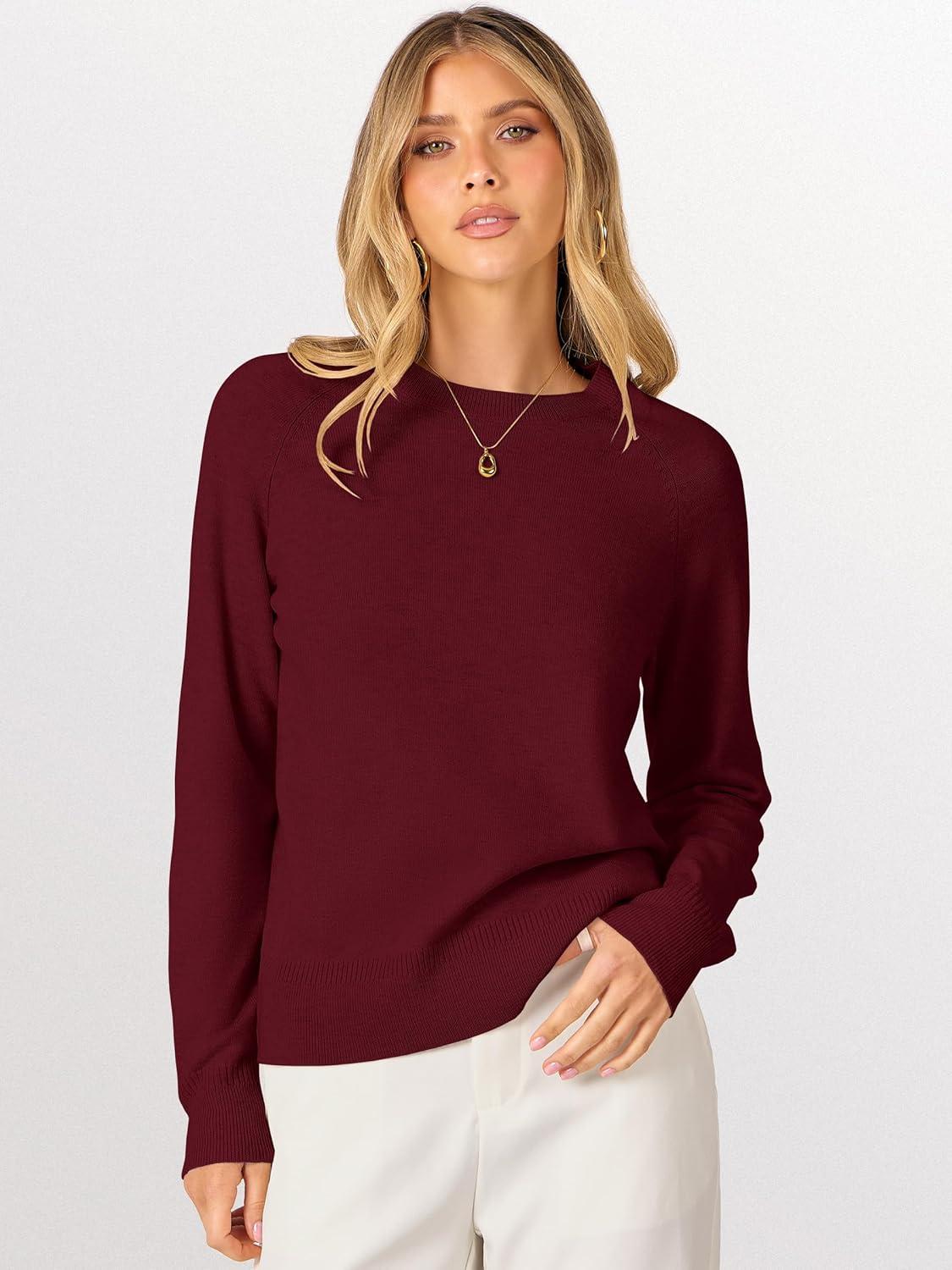 imageANRABESS Sweaters for Women Short Length Loose Fit Lightweight Long Sleeve Crewneck Knit Basic Sweater 2025 Fall OutfitsRed