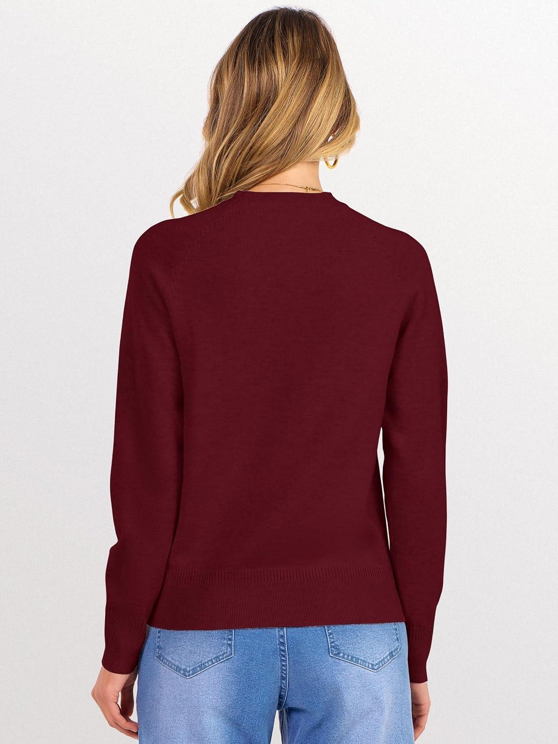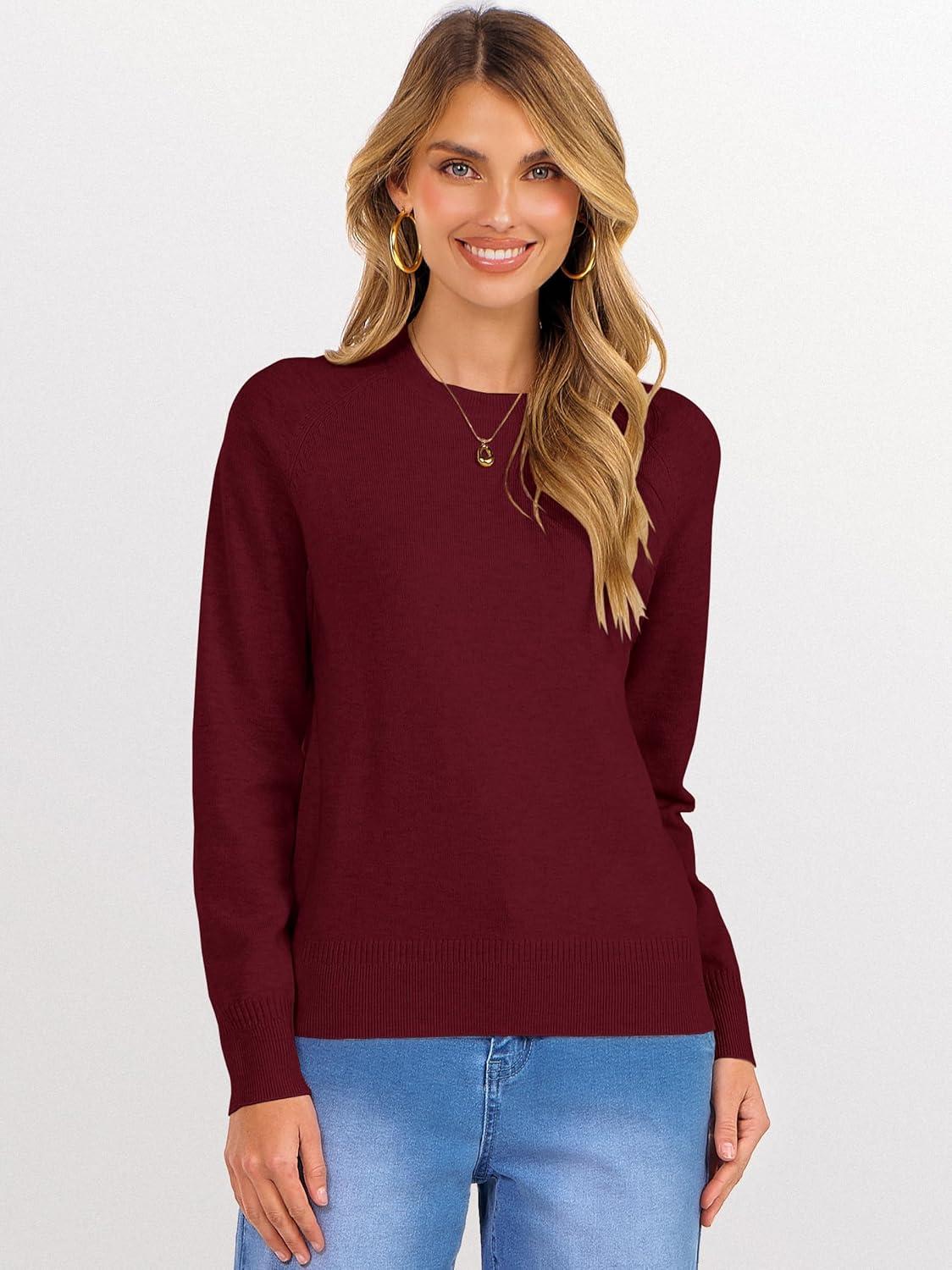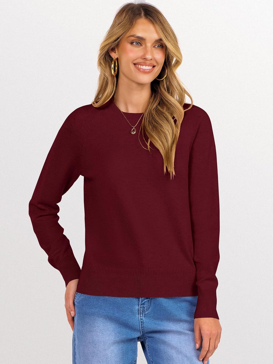 imageANRABESS Sweaters for Women Short Length Loose Fit Lightweight Long Sleeve Crewneck Knit Basic Sweater 2025 Fall OutfitsRed