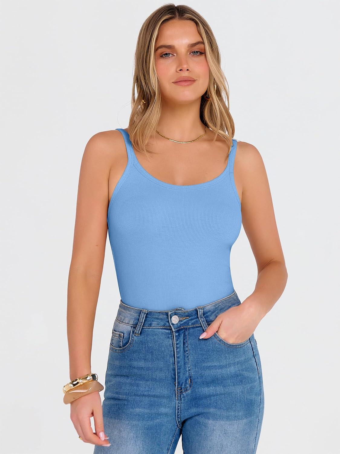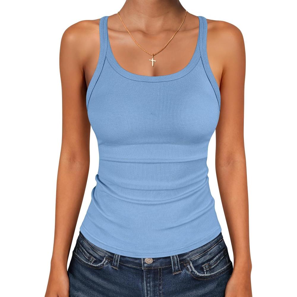 ANRABESS Tank Top for Womens Summer 2026 Scoop Neck Sleeveless Ribbed Knit Workout Basic Tees Slim Fitted Cami Shirts(Sky Blue)