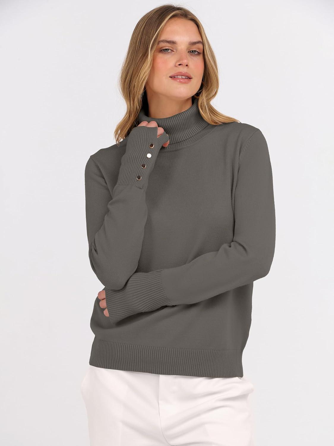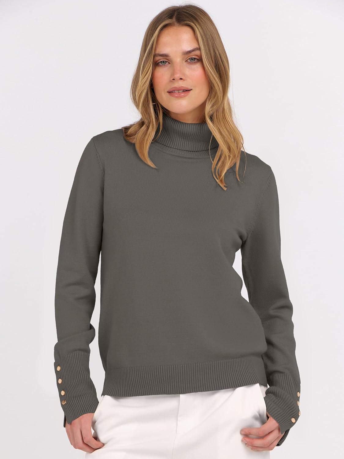 Save big on ANRABESS Turtleneck Sweaters for Women 2025 Fall Long Sleeve Dressy Casual Soft Knitted Button Basic Pullover Tops Outfits(Grey Khaki) during our summer blowout sale. Limited quantities available.