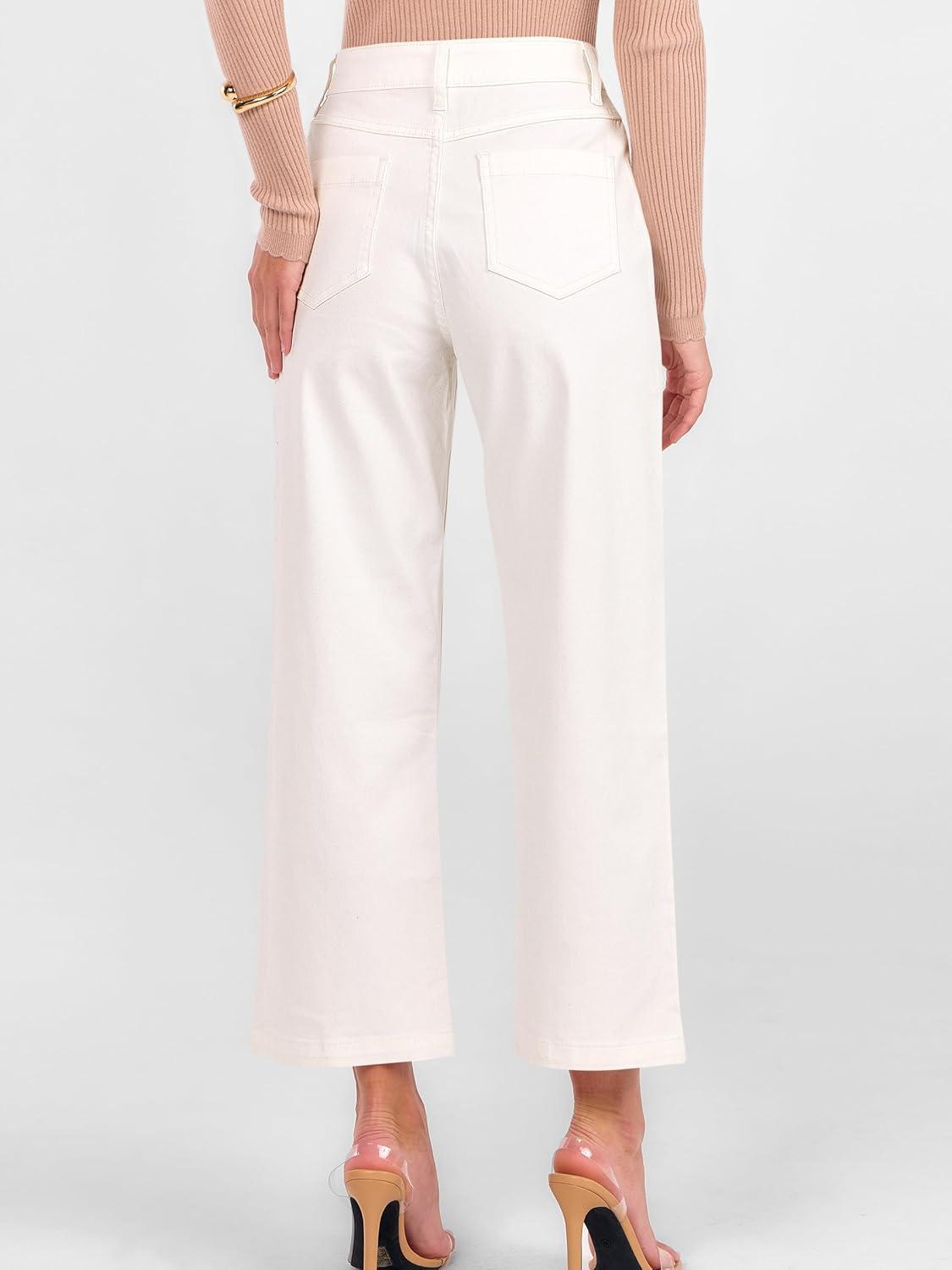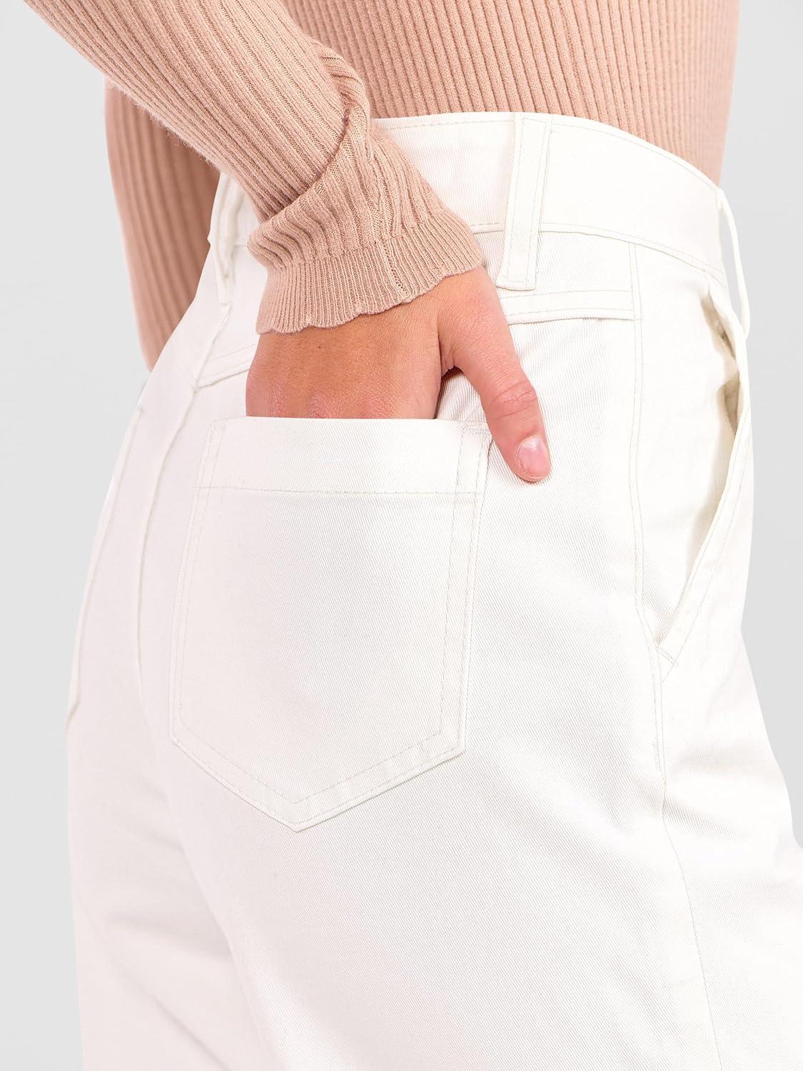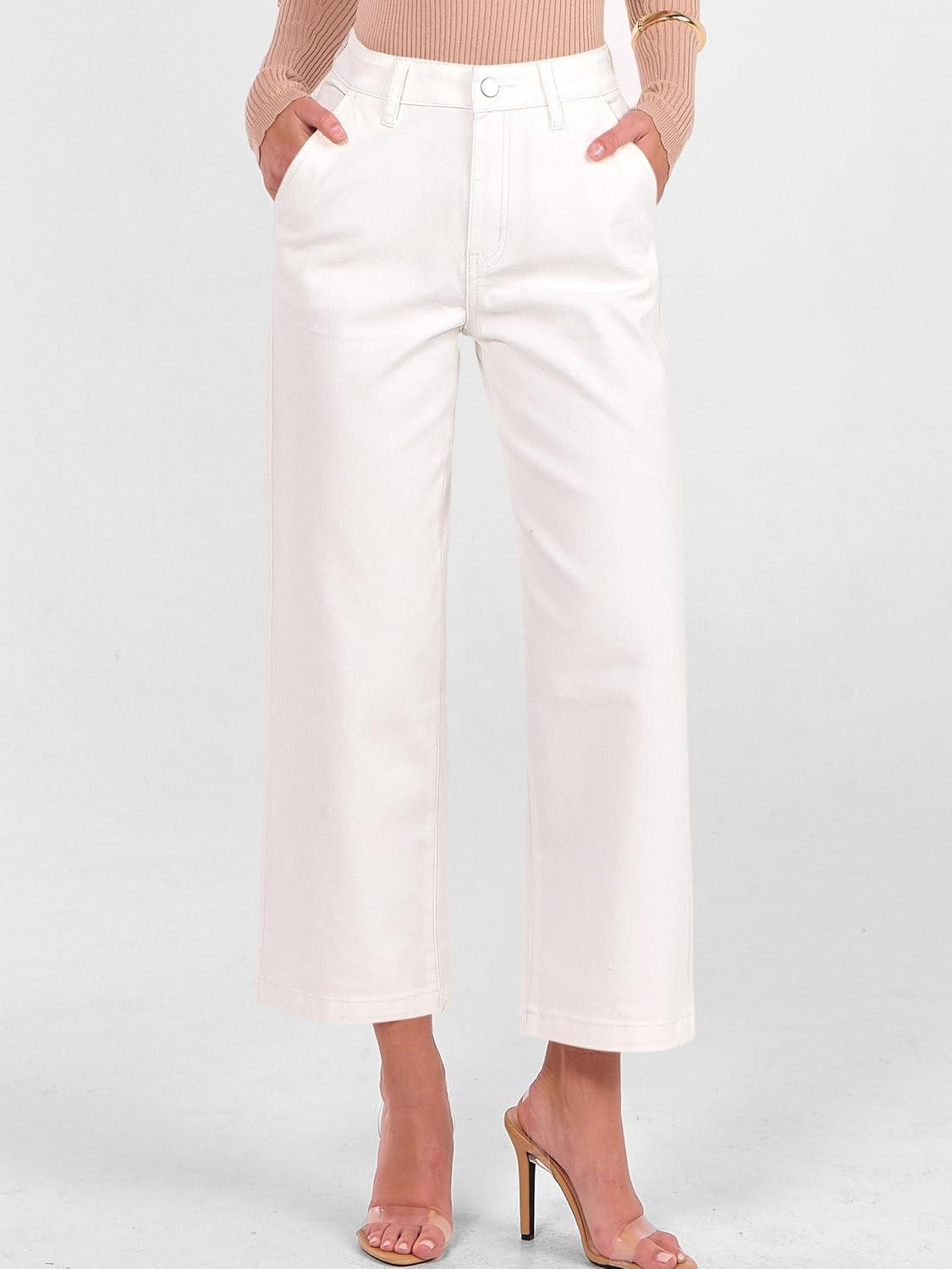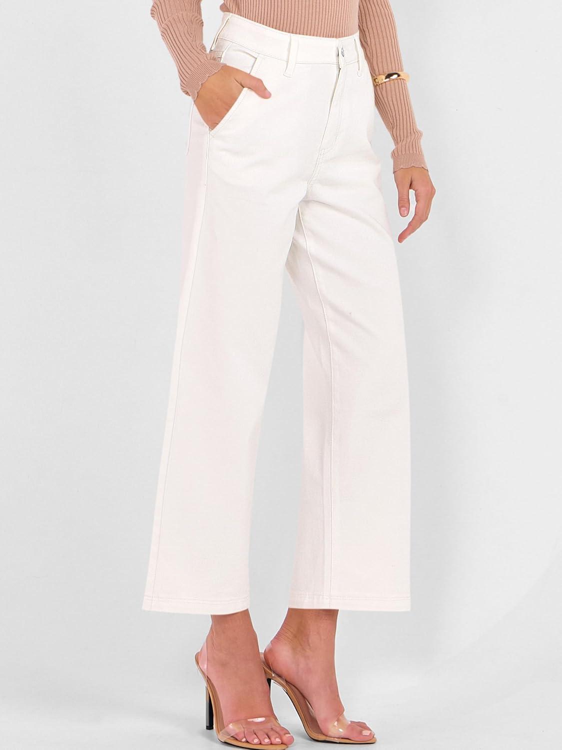 ANRABESS Wide Leg Jeans for Women High Waist Baggy Straight Stretchy Flare Cropped Denim Pants with Patch Pockets 2025 Trendy(White)