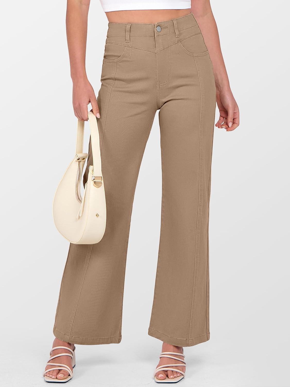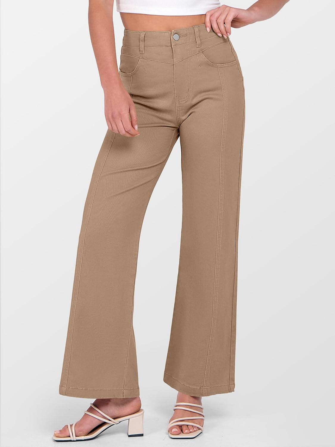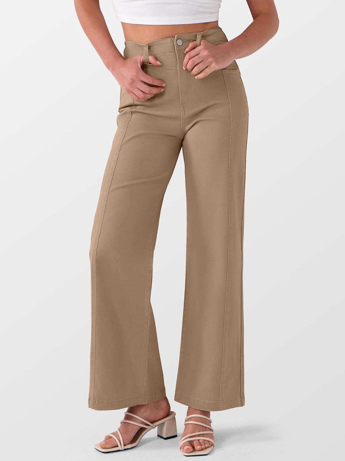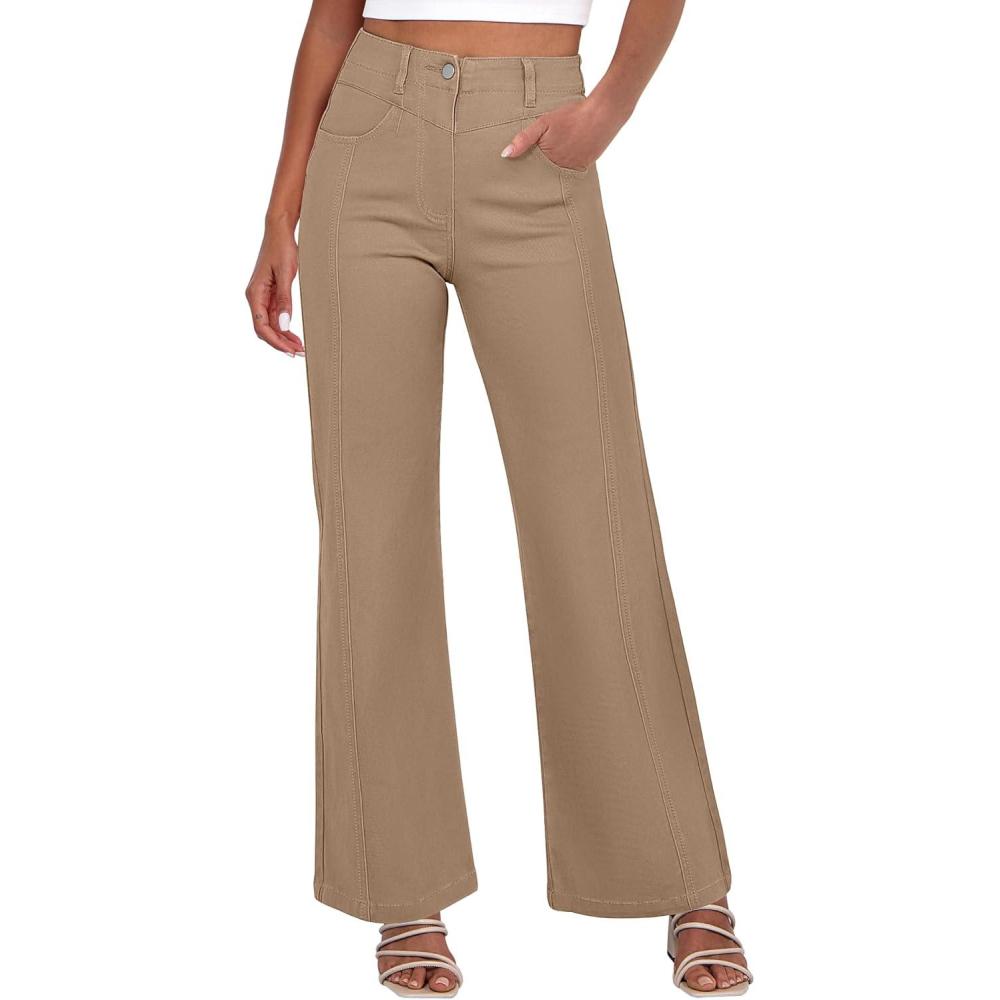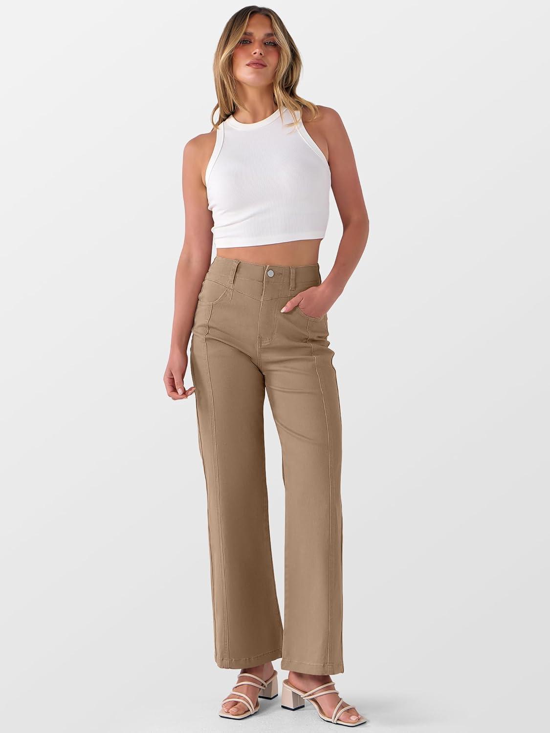 ANRABESS Wide Leg Jeans for Women Trendy 2025 High Waisted Stretchy Baggy Fall Fashion Denim Pants with Pockets(Deep Khaki)