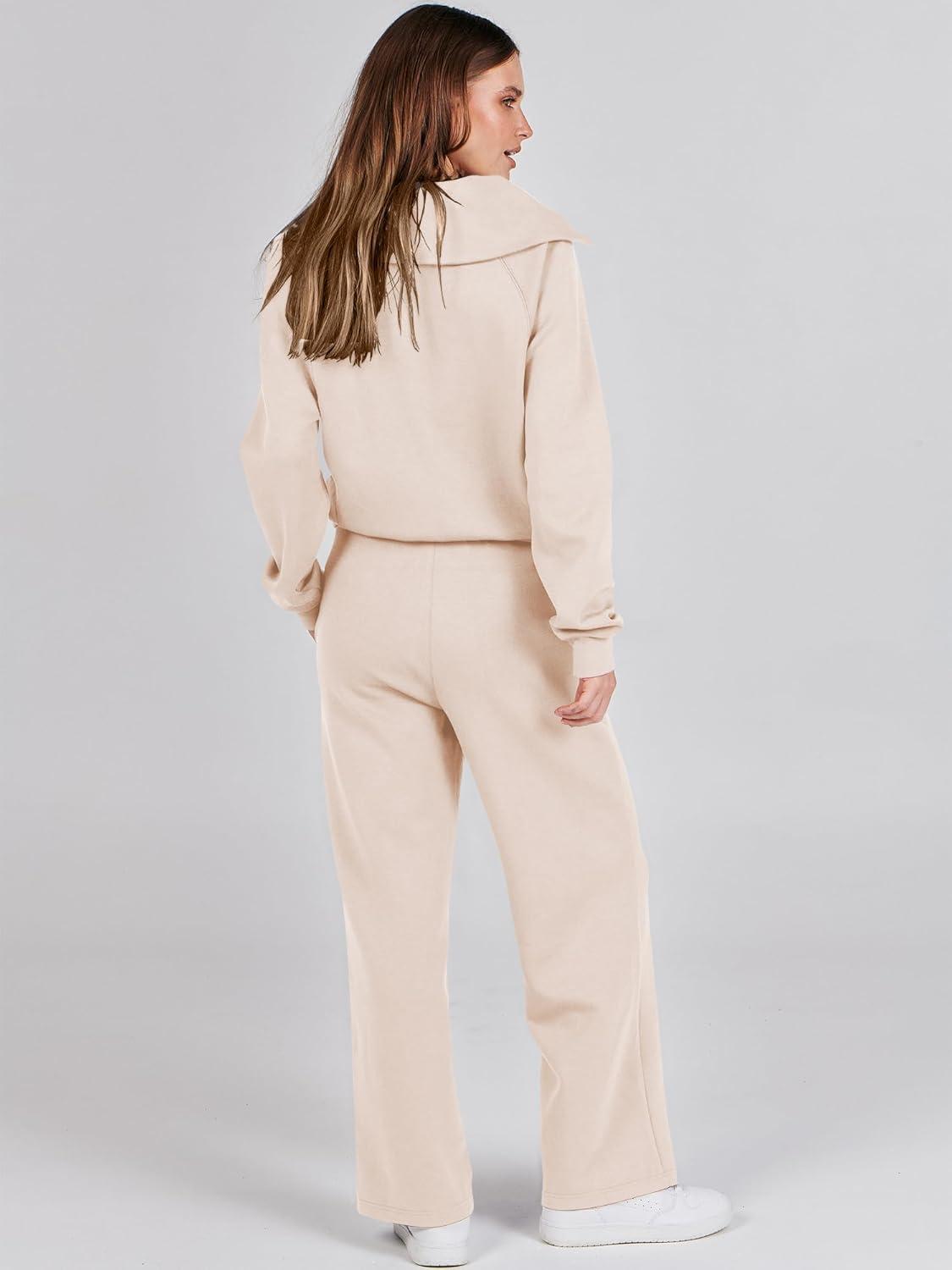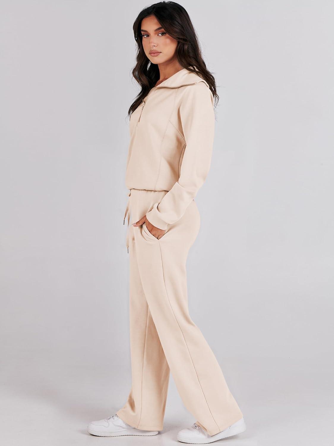 imageANRABESS Women 2 Piece Outfits 2025 Fall Fashion Airport Wide Leg Pants Lounge Set Leisure Travel Vacation Clothes SweatsuitsApricot