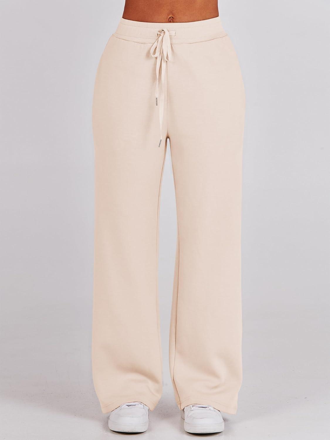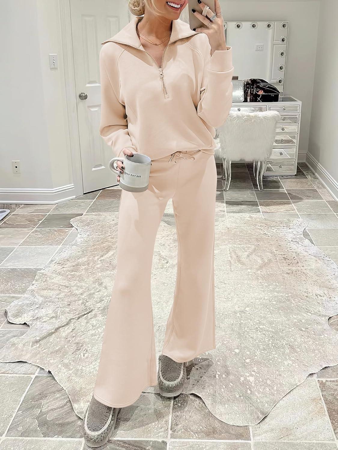 ANRABESS Women 2 Piece Outfits 2025 Fall Fashion Airport Wide Leg Pants Lounge Set Leisure Travel Vacation Clothes Sweatsuits(Apricot)