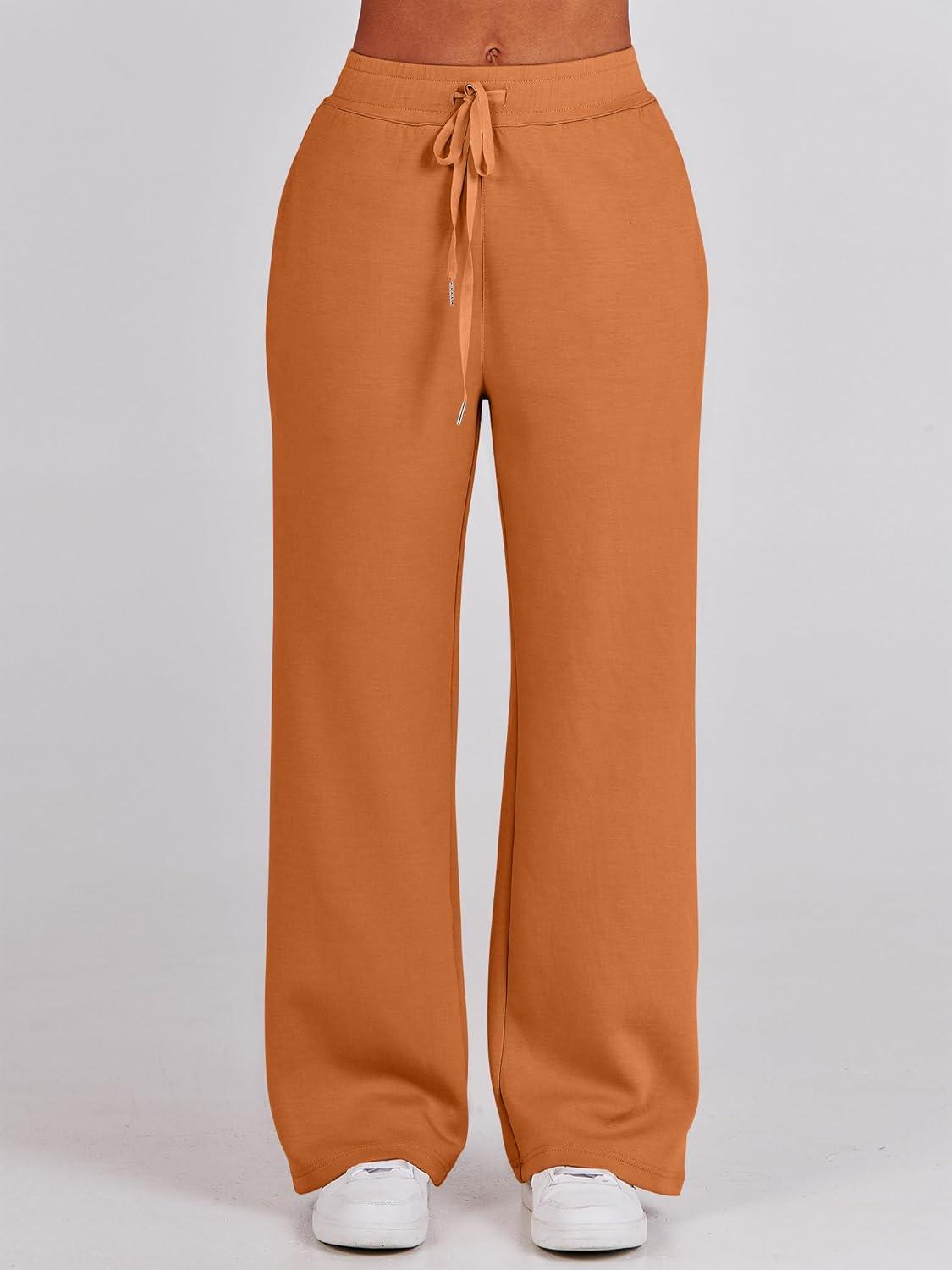 ANRABESS Women 2 Piece Outfits 2025 Fall Fashion Airport Wide Leg Pants Lounge Set Leisure Travel Vacation Clothes Sweatsuits(Pumpkin)