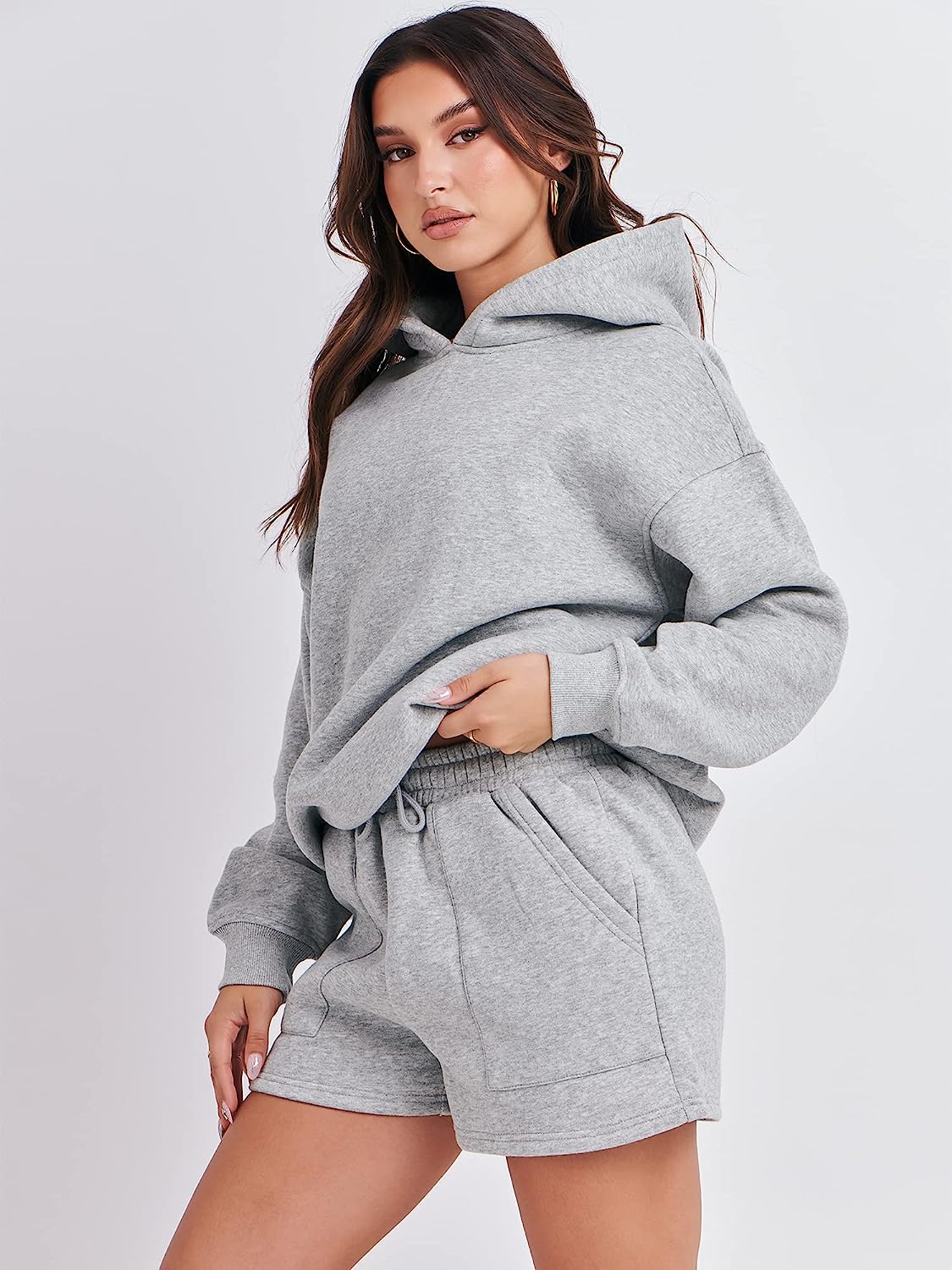ANRABESS Women 2 Piece Outfits Hoodie Short Set Oversized Sweatshirt Shorts Sweatsuit Y2K Clothes(Ligh Grey)