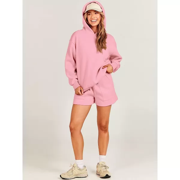 ANRABESS Women 2 Piece Outfits Hoodie Short Set Oversized Sweatshirt Shorts Sweatsuit Y2K Clothes(Pink)