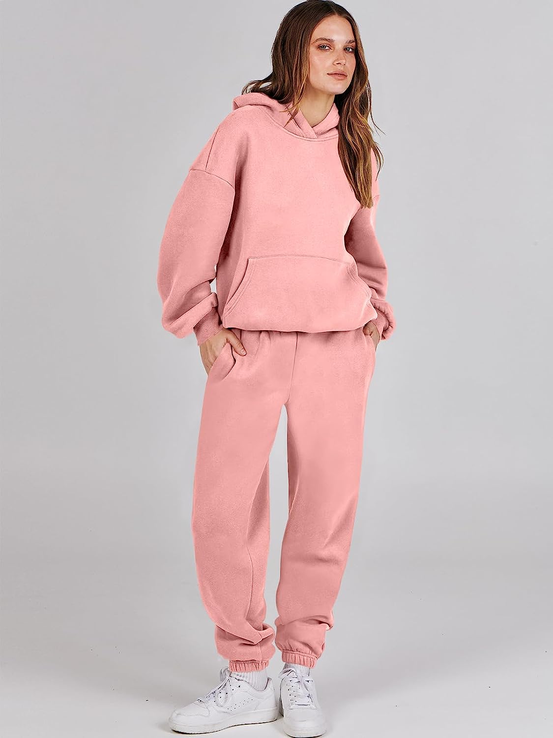 ANRABESS Women 2 Piece Outfits Hoodie Sweatshirt Tracksuit & Oversized Jogger Sweatpants Y2K Sweatsuit Set(Pink)