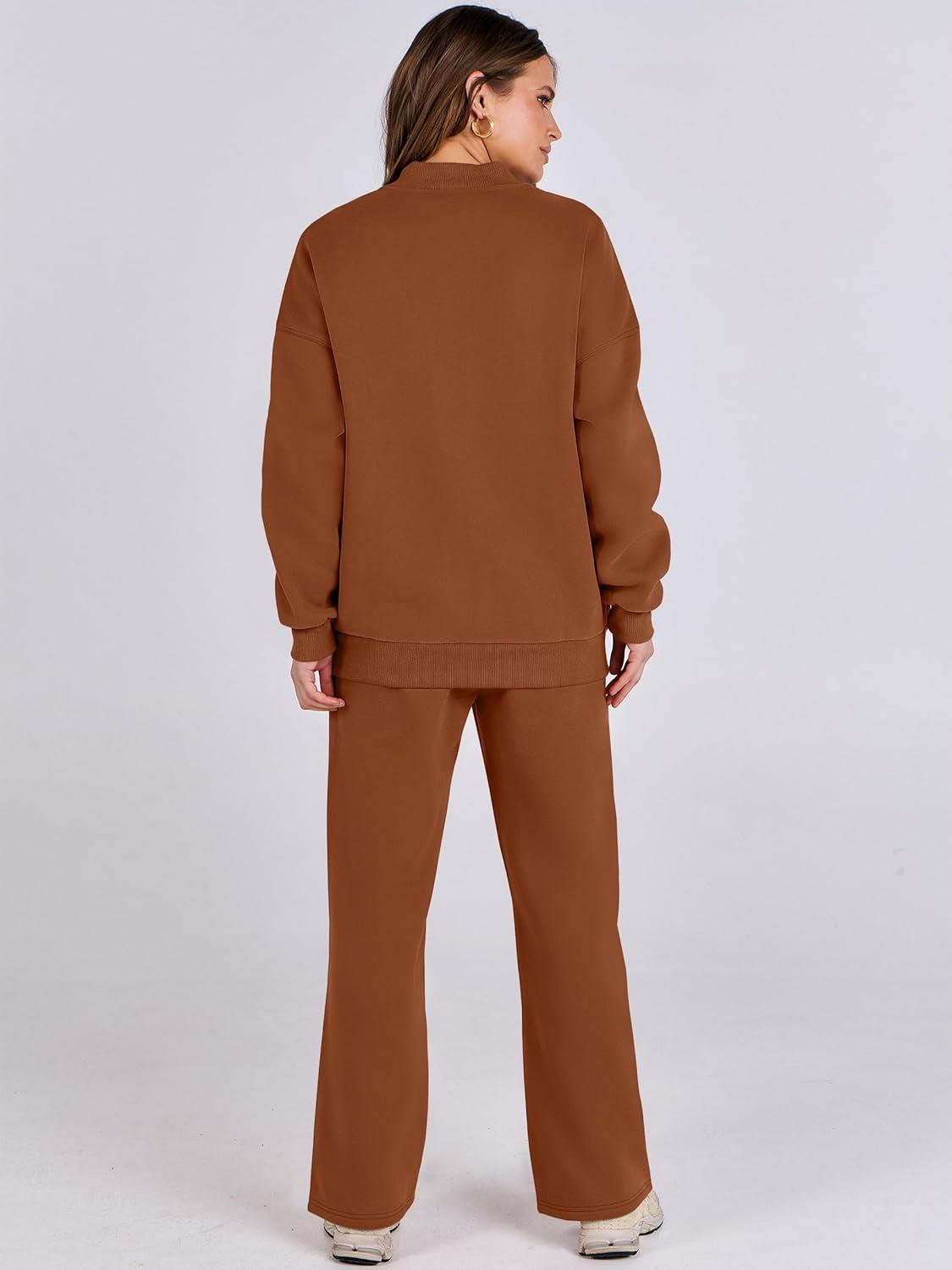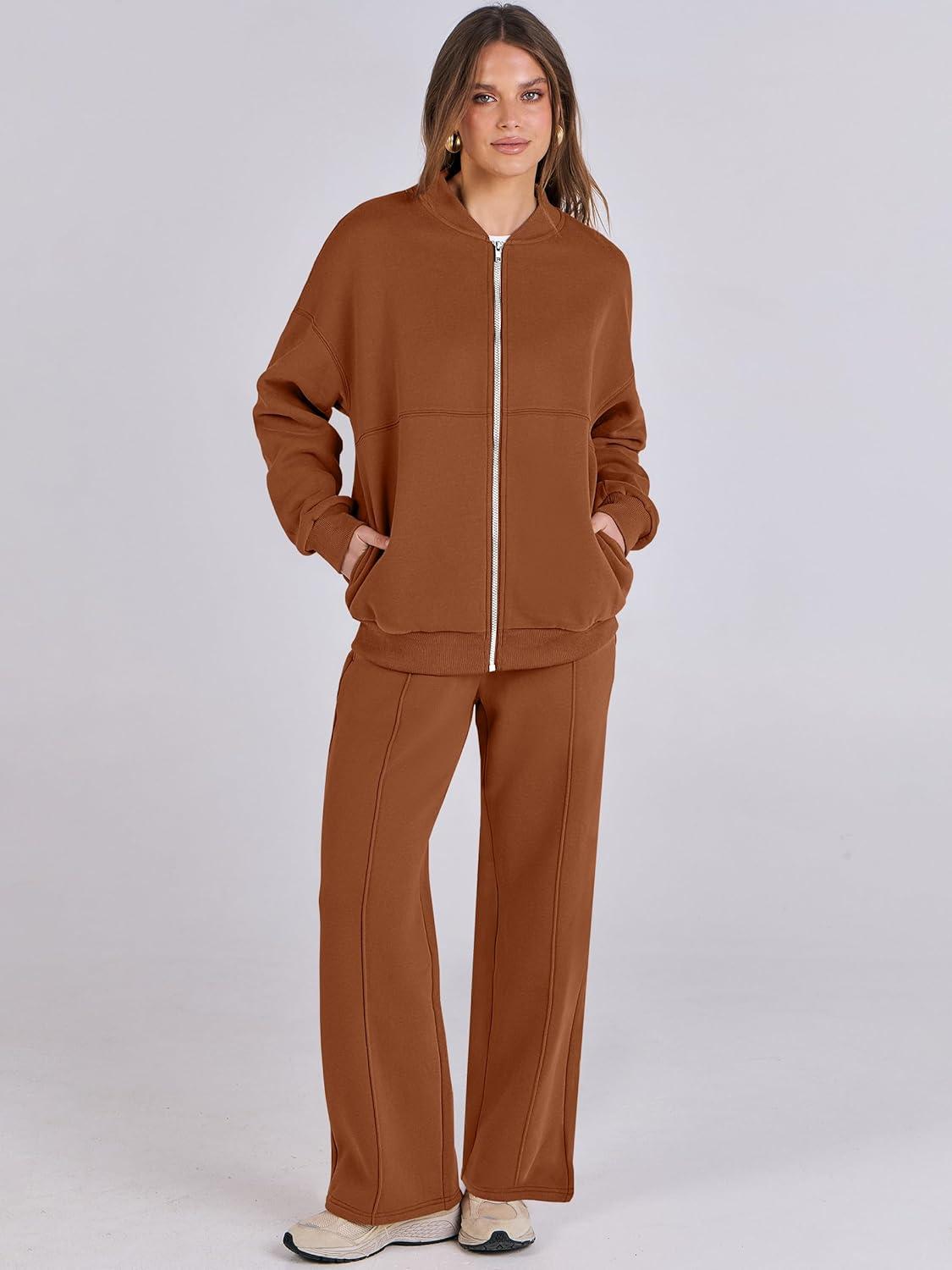 imageANRABESS Women 2 Piece Outfits Lounge Set Oversized Zip Up Sweatshirt Jacket Sweatpant Matching Sweat Sets Winter SweatsuitsDark Brown