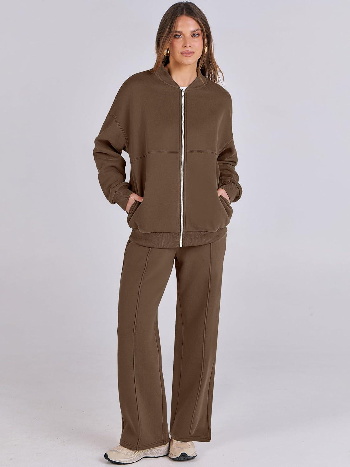 imageANRABESS Women 2 Piece Outfits Lounge Set Oversized Zip Up Sweatshirt Jacket Sweatpant Matching Sweat Sets Winter SweatsuitsDark Brown
