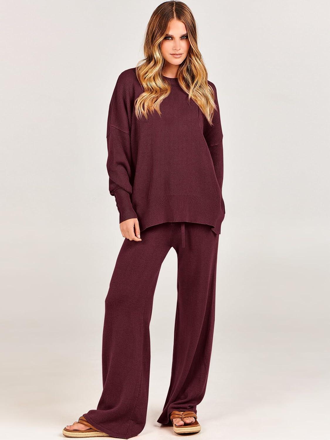 Get your hands on our newest ANRABESS Women 2 Piece Outfits Oversized Chunky Knit Sweater Top Wide Leg Pants 2024 Fall Lounge Set Trendy Cozy Clothes(Burgundy) and enjoy a limited-time discount offer.