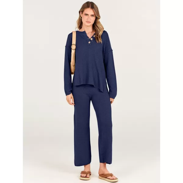 ANRABESS Women 2 Piece Outfits Oversized Knit Loungewear Loose Slouchy Sweater Set 2023 Fall Trendy Matching Lounge Sets(Navy Blue)