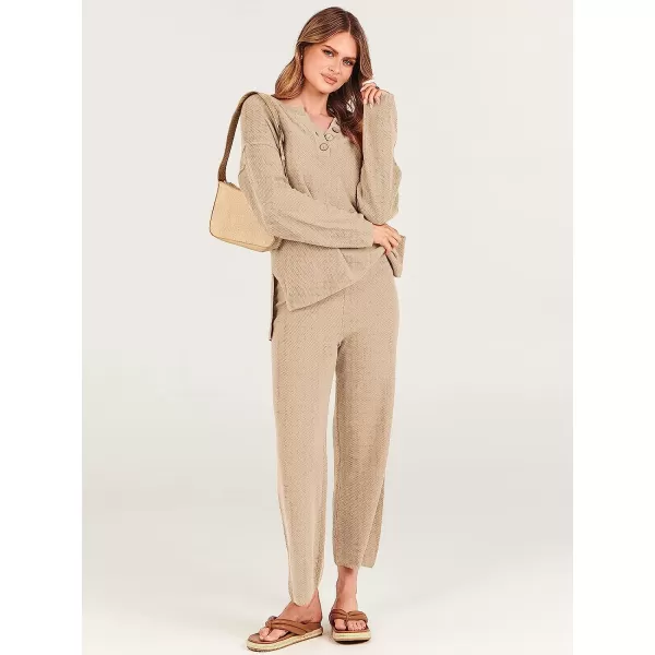 imageANRABESS Women 2 Piece Outfits Oversized Knit Loungewear Sweater Set 2023 Fall Sweatsuit Matching Lounge SetsBeige