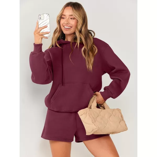 imageANRABESS Women 2 Piece Outfits Short Sweatsuit Drawstring Oversized Hoodie Sweatshirt Tracksuit Lounge Wear Matching SetRed