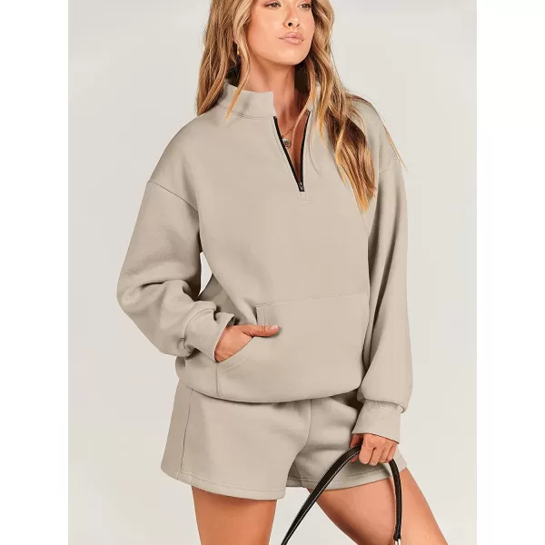 Features – Long sleeve sweatshirt top and a high waist matching shorts, 1/4 zipped neckline, causal v-neck polo collared, ribbed cuffs, drop shoulder, and two side pockets on shorts. Super flattering and cozy while still looking cute and put together!