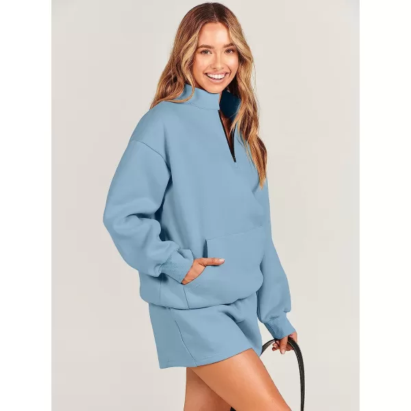 imageANRABESS Women 2 Piece Outfits Sweatsuit Oversized Half Zip Collared Sweatshirt amp Short Set Lounge Wear Tacksuit SetGrey