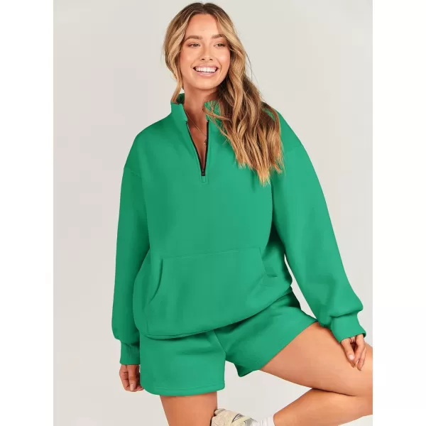 imageANRABESS Women 2 Piece Outfits Sweatsuit Oversized Half Zip Collared Sweatshirt amp Short Set Lounge Wear Tracksuit SetGreen