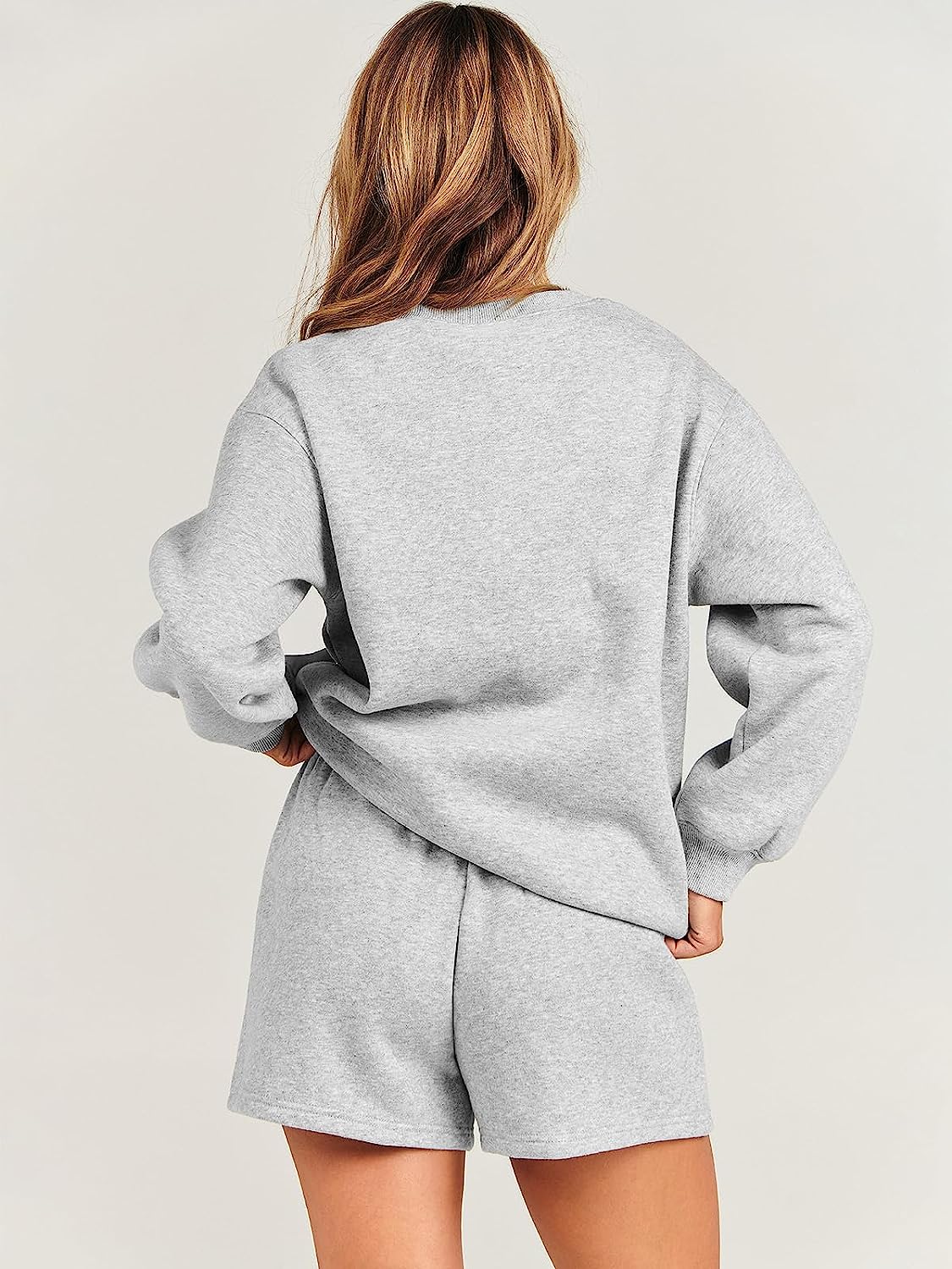 ANRABESS Women 2 Piece Outfits Sweatsuit Oversized Sweatshirt & Lounge Shorts 2023 Casual Cozy Pajamas Tacksuit Set(Light Grey)