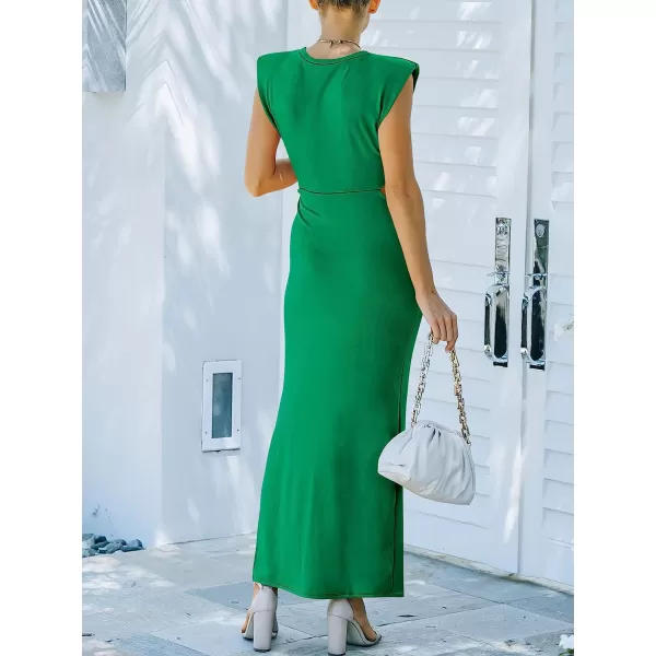 ANRABESS Women 2023 Summer Sleeveless Padded Shoulder Cutout Sexy Bodycon Slit Maxi Formal Dress(Grass)