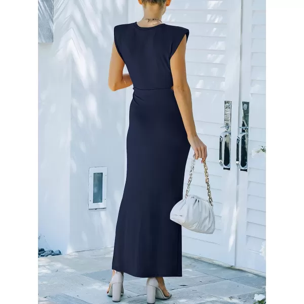 ANRABESS Women 2023 Summer Sleeveless Padded Shoulder Cutout Sexy Bodycon Slit Maxi Formal Dress(Navy Blue)