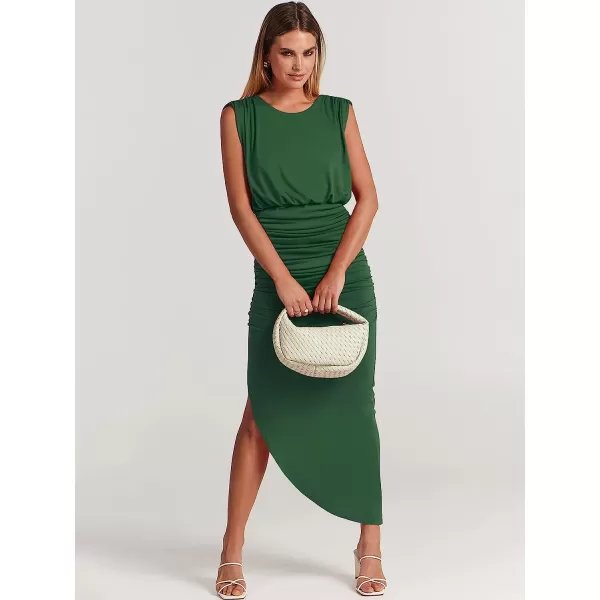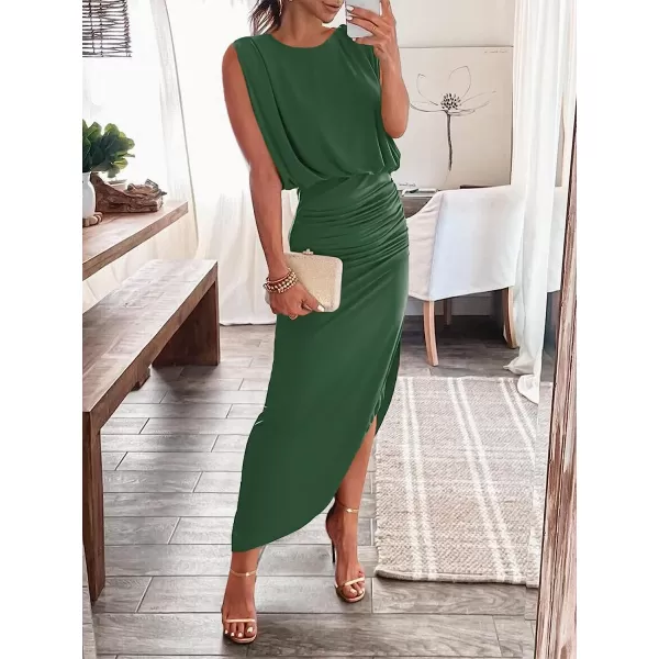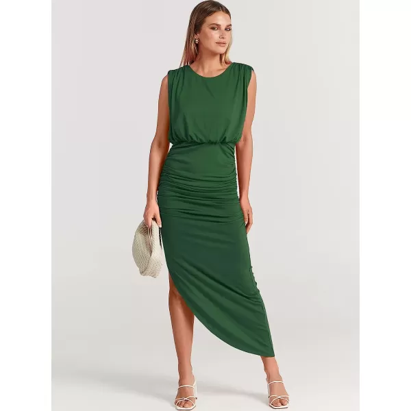 ANRABESS Women 2023 Summer Sleeveless Ruch Bodycon High Waist Asymmetric Slit Cocktail Maxi Dress(Green)