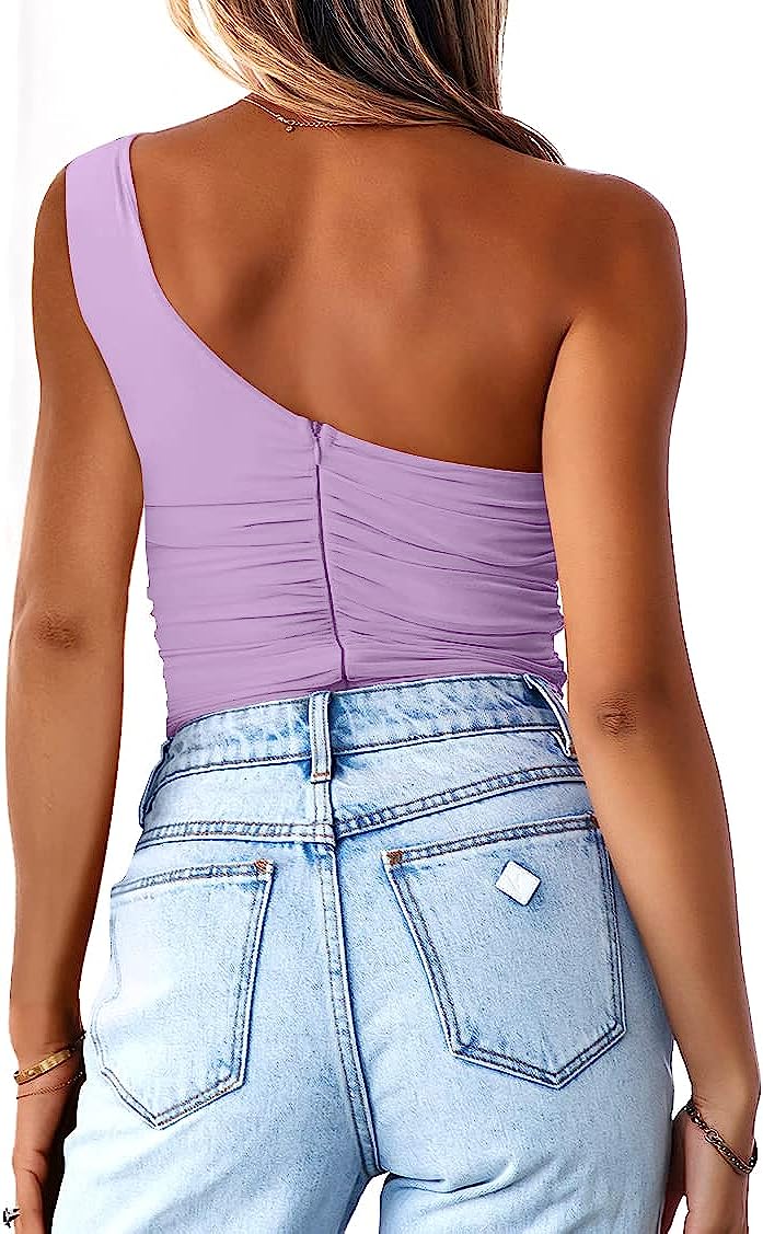 This one shoulder bodysuit for women feature with sleeveless design and one shoulder,sleek form-fitted, team this bodysuit with denim jeans and kicks for a cool everyday vibe.