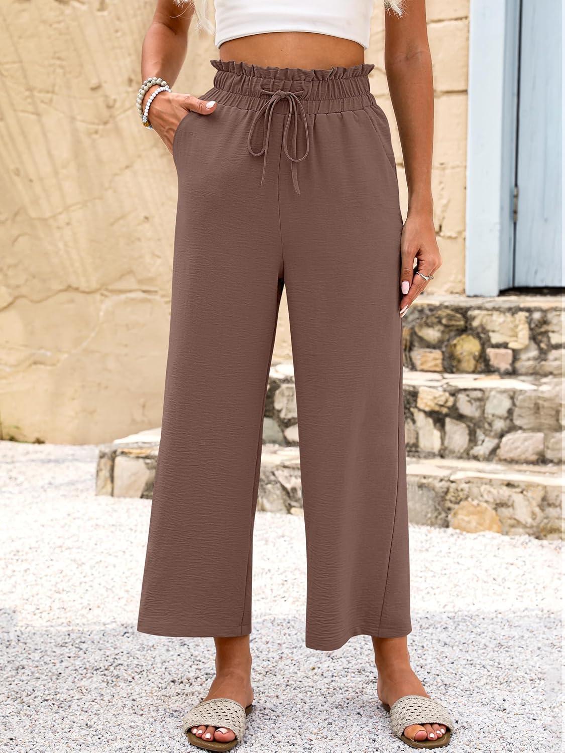 Get your hands on our exclusive ANRABESS Women 2025 Summer Casual Flowy Loose High Waist Boho Wide Leg Cropped Palazzo Lounge Beach Vacation Pants Trousers(Coffee) collection, now at a discounted price.