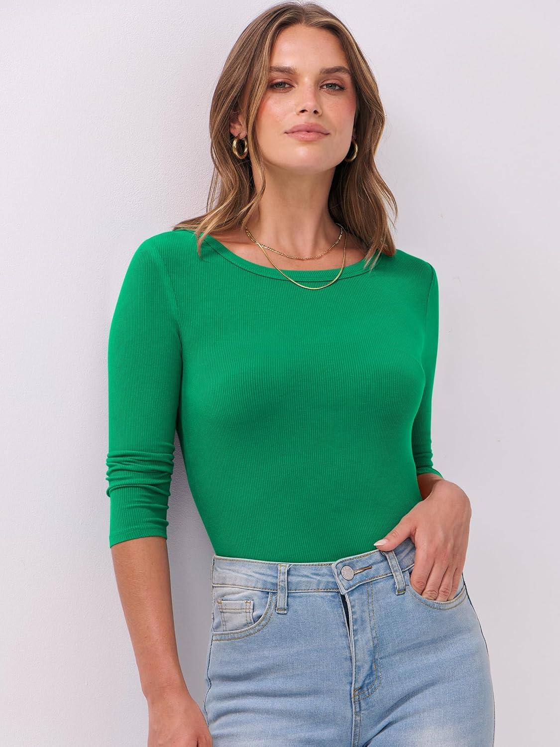 Our holiday sale features the best deals on ANRABESS Women 3/4 Sleeve Crewneck Rib Knit Slim Fit Shirts Basic Tee Tops 2025 Fall Summer Casual T-Shirt Workout Outfits(Green) and accessories. Shop now and save!