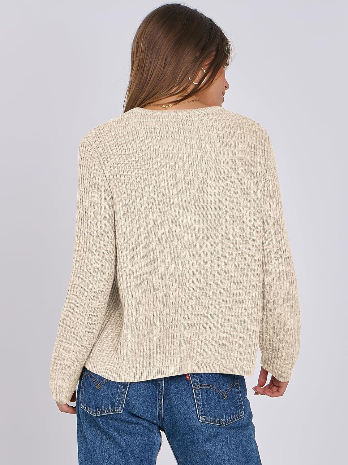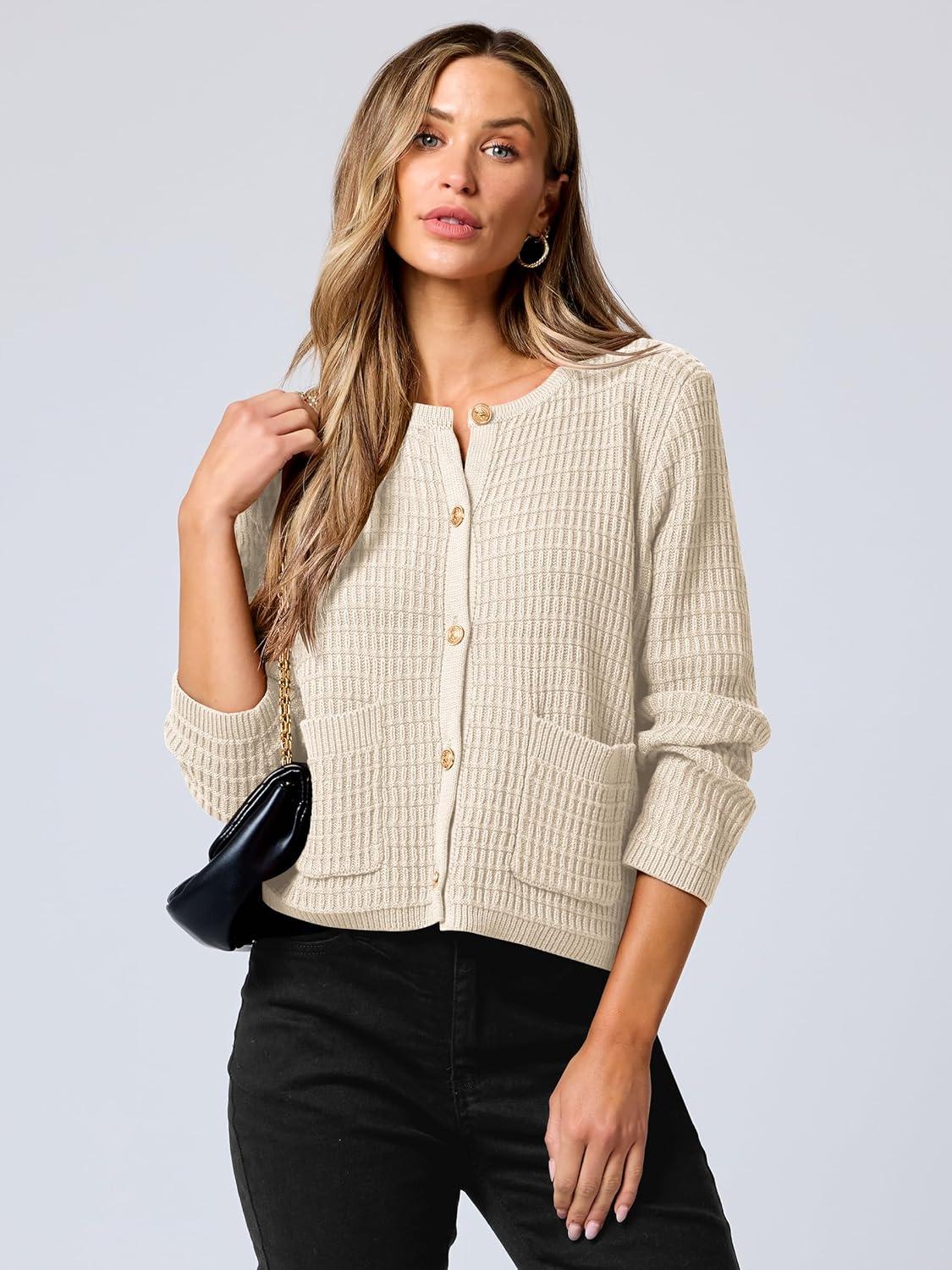 image:imageANRABESS Women Cardigan Sweater Dressy Casual Classic Long Sleeve Crew Neck Button Down Tweed Knit Jacket 2026 Fall OutfitsBeige