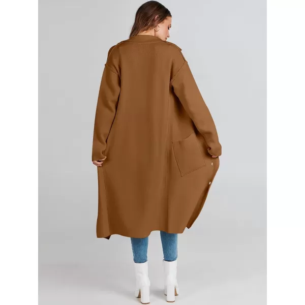 ANRABESS Women Cardigans 2023 Trendy Sweater Coat Oversized Long Sleeve Button Down Lapel Open Front Jacket Outwear(Caramel)