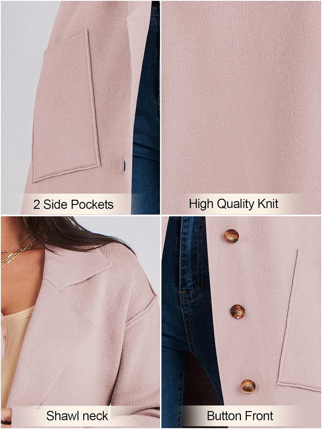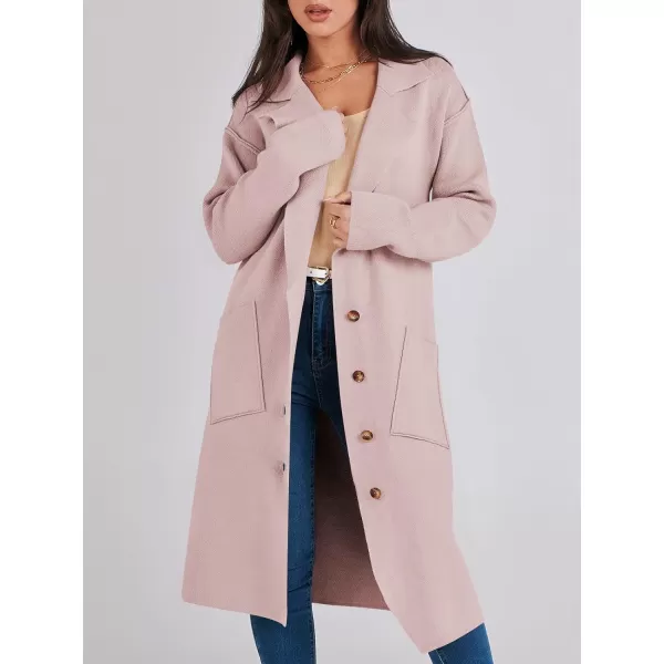 ANRABESS Women Cardigans 2023 Trendy Sweater Coat Oversized Long Sleeve Button Down Lapel Open Front Jacket Outwear(Pink)