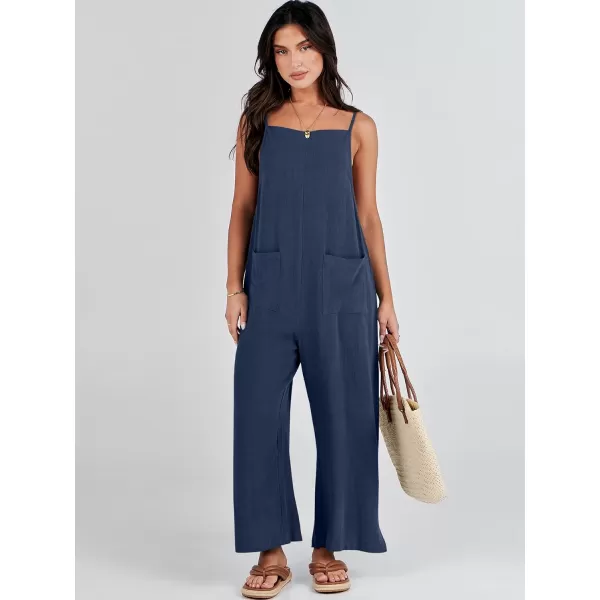 ANRABESS Women Casual Loose Long Bib Pants Wide Leg Jumpsuits Baggy Linen Rompers Overalls with Pockets(Navy Blue)