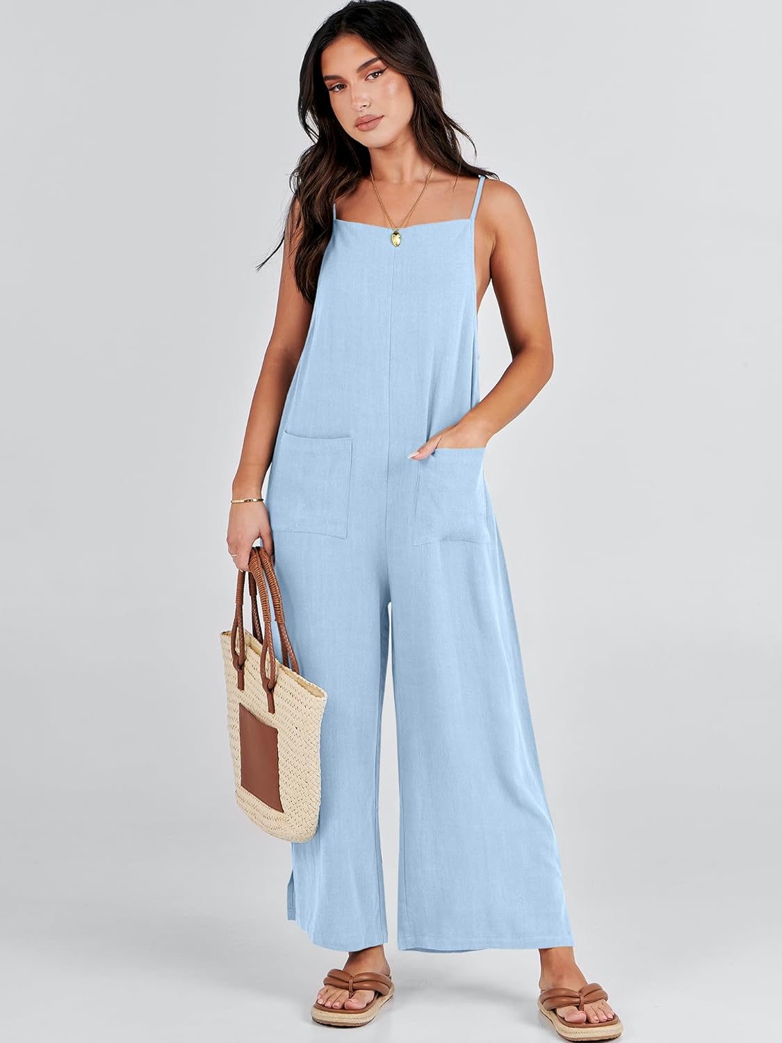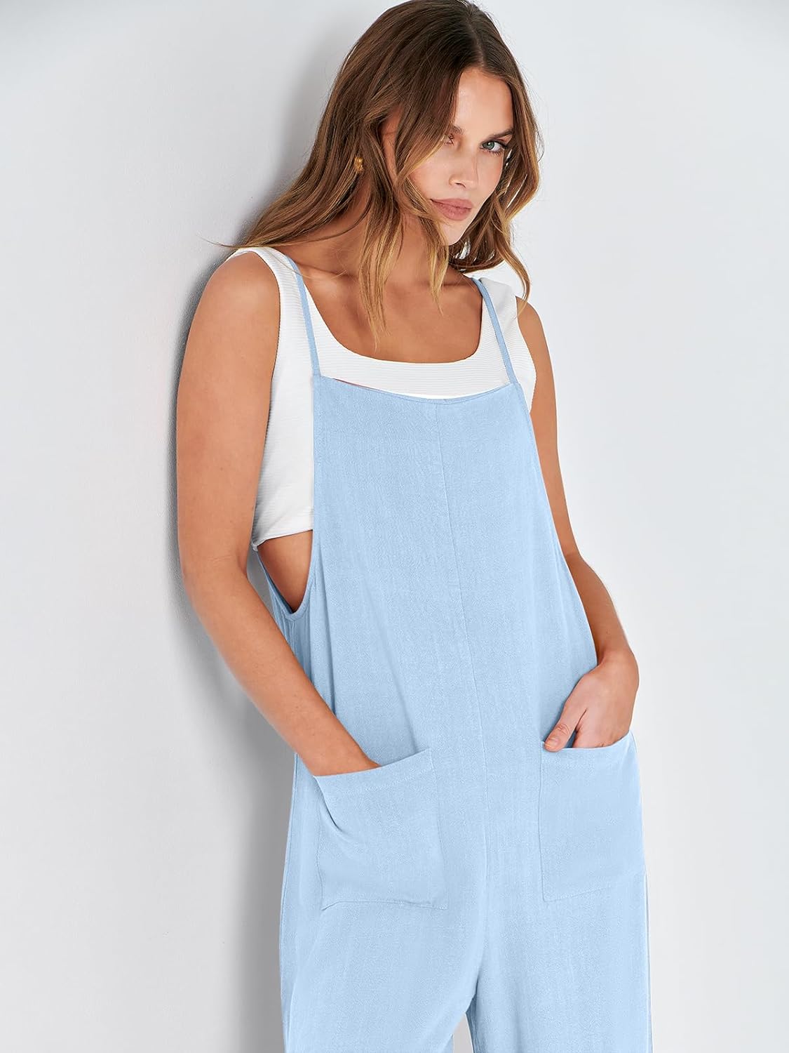 Get the ANRABESS Women Casual Loose Long Bib Pants Wide Leg Jumpsuits Baggy Linen Rompers Overalls with Pockets you want at a discounted price during our markdown sale event.